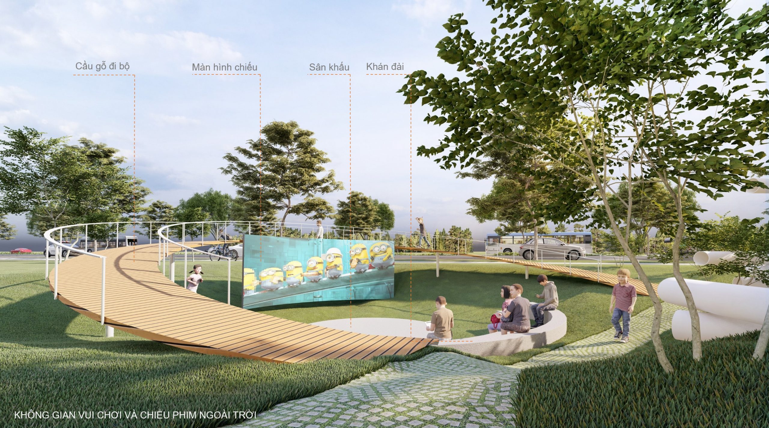 Không gian vui chơi và chiếu phim ngoài trời
