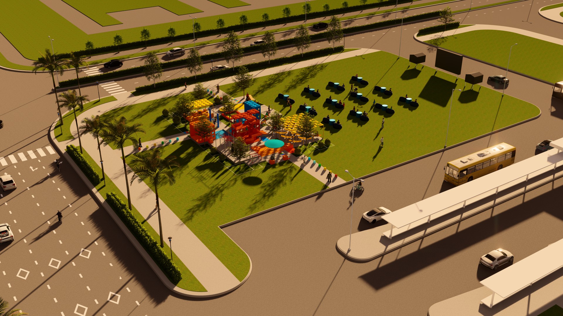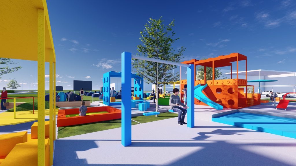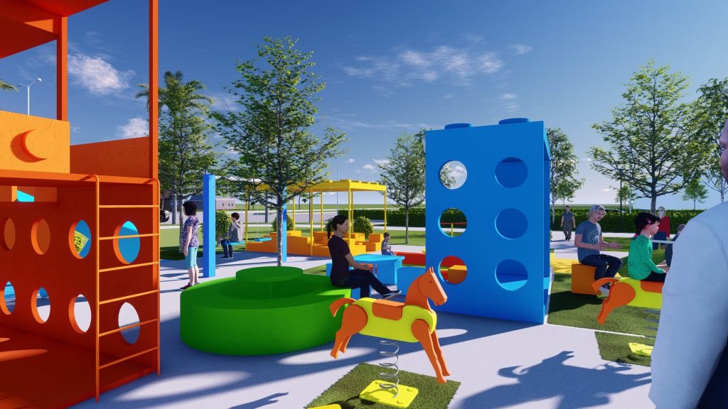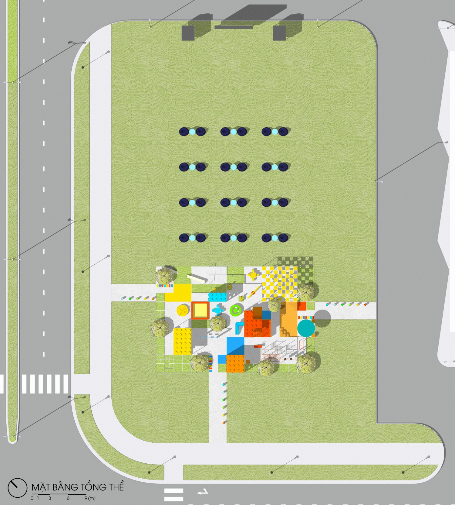 Khu đất nằm ở ngay trục chính gần khu vực cổng vào của khu dân cư Waterpoint (vị trí ngã ba đầu tiên). Vì thế mục tiêu thiết kế của đề tài không chỉ là tạo nên 1 khu vui chơi sinh hoạt với những tiện nghi phục vụ được cho nhiều lứa tuổi, mà còn là một điểm nhấn đầy sắc màu cho khu vực, thu hút được nhiều khách tham quan, ghé thăm.