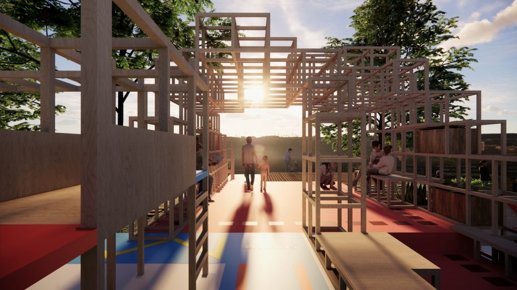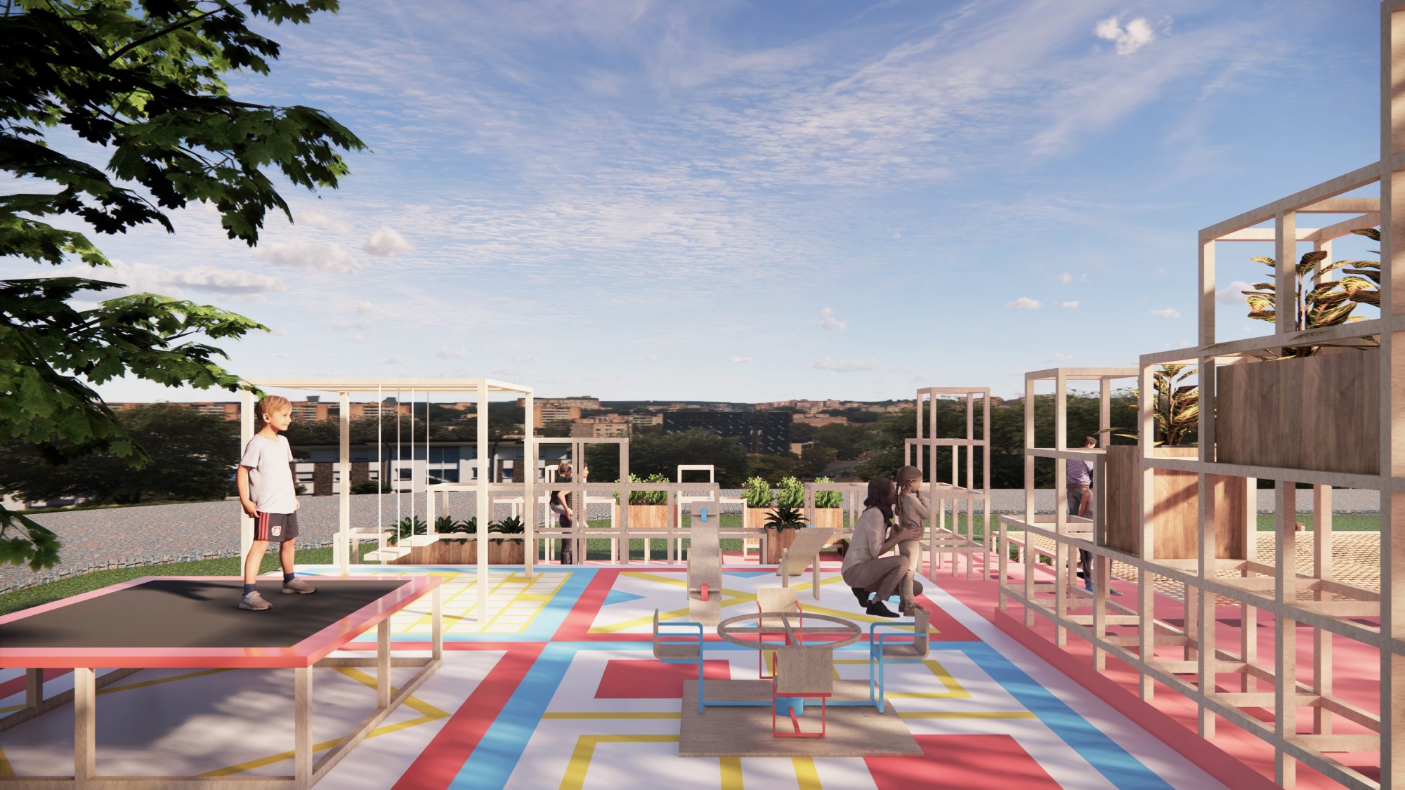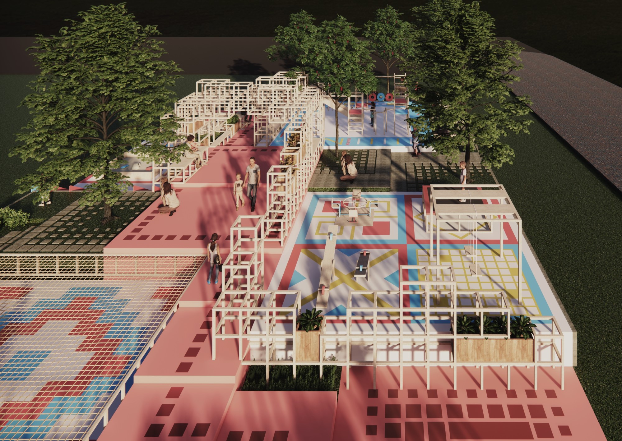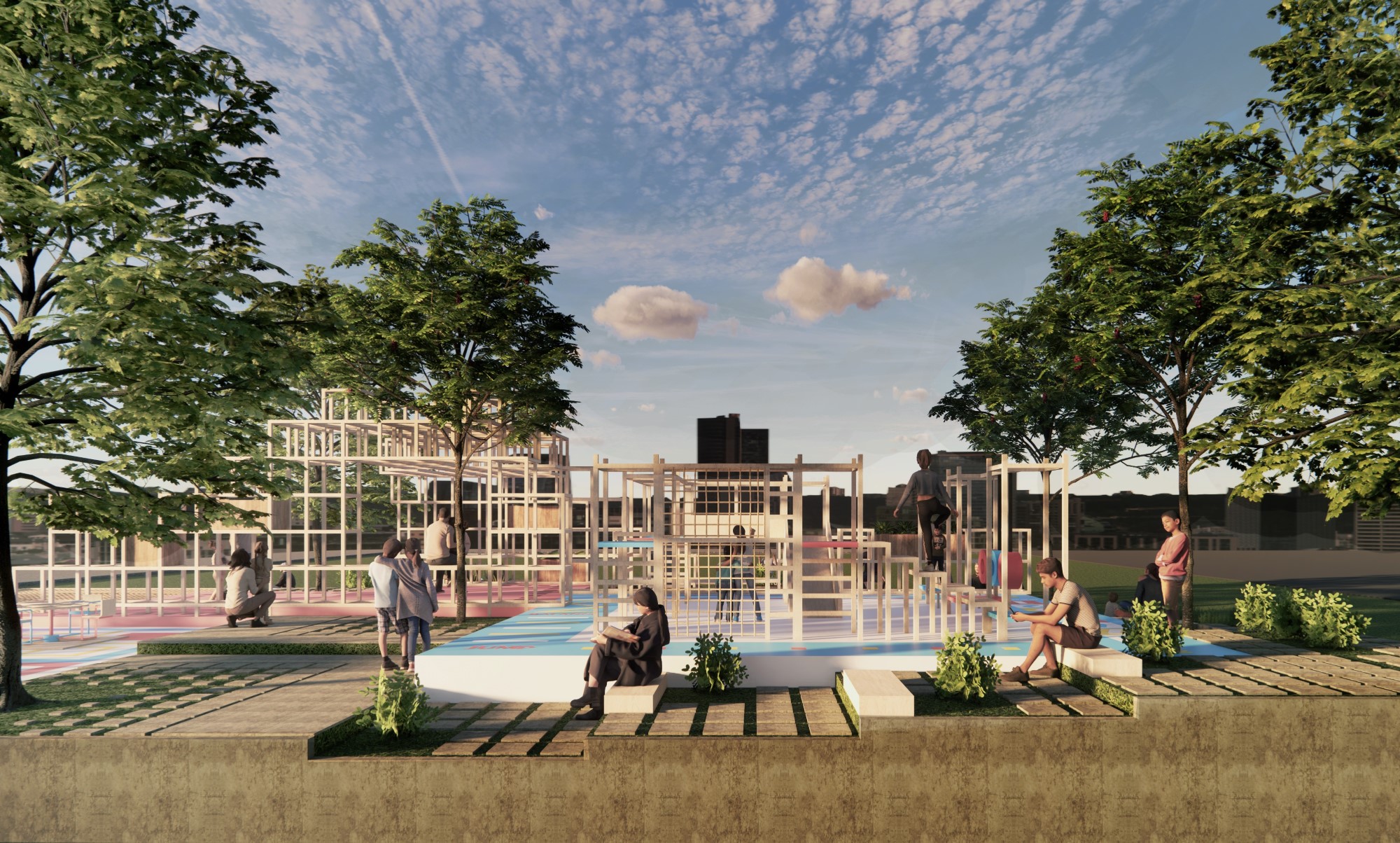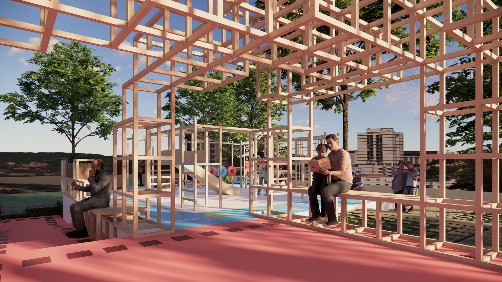 Lấy “Kết nối” làm ý tưởng chính toàn bài. Tạo dựng một sân chơi tăng sự tương tác giữa con người với con người, sử dụng vật liệu địa phương, bền vững, dễ tìm, kinh phí thấp.