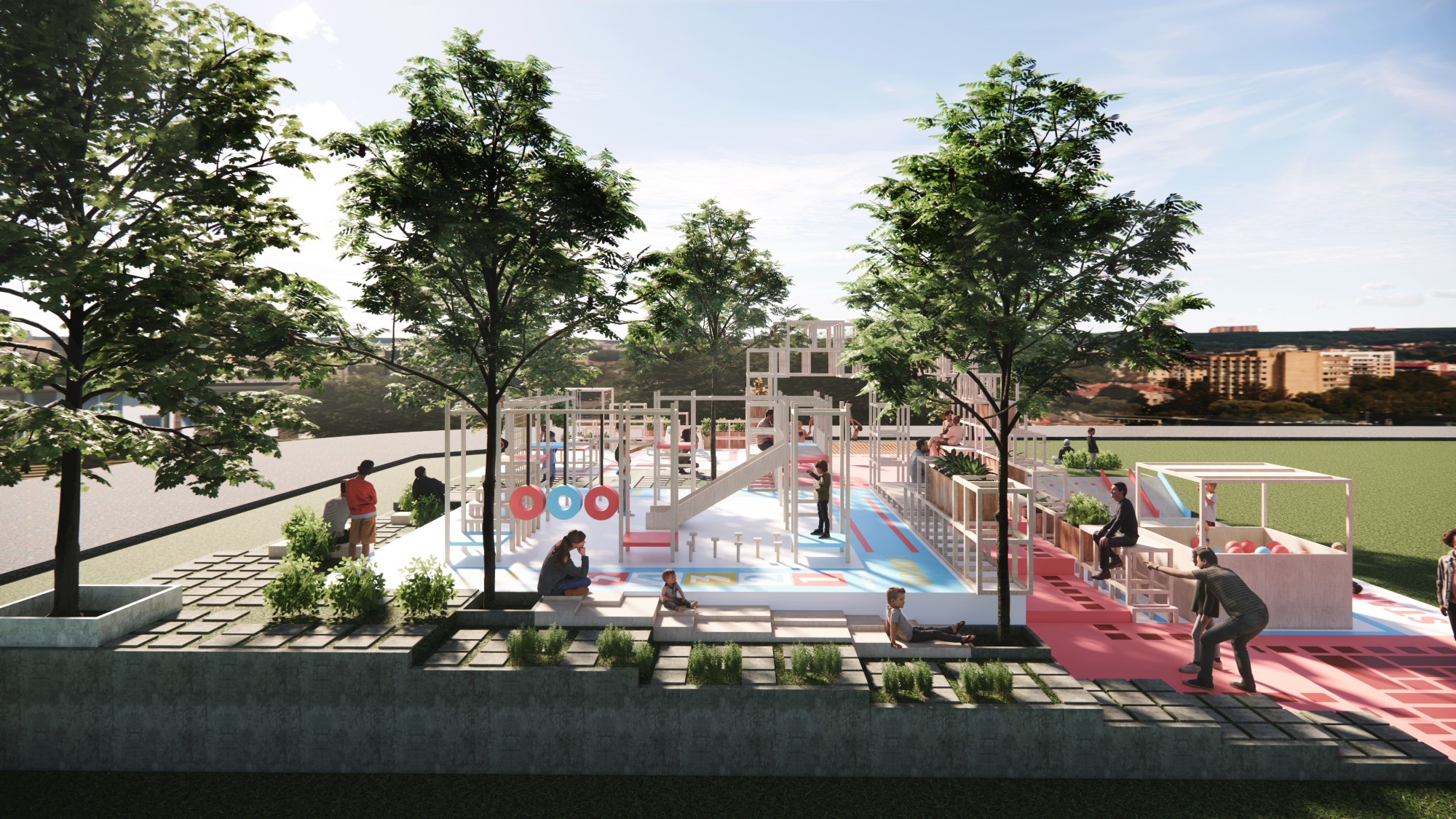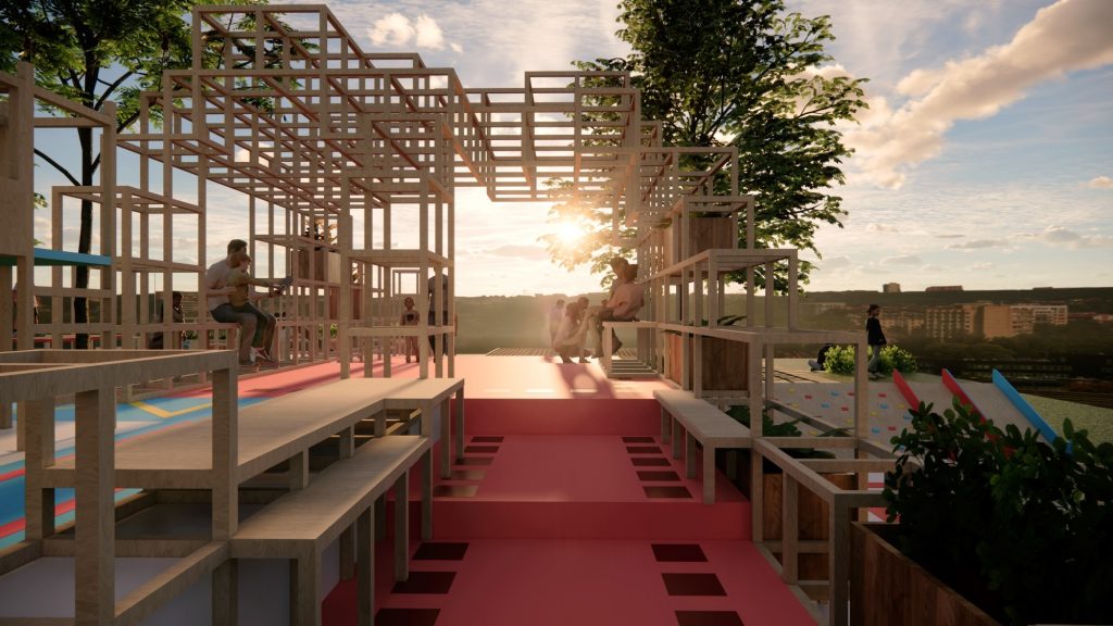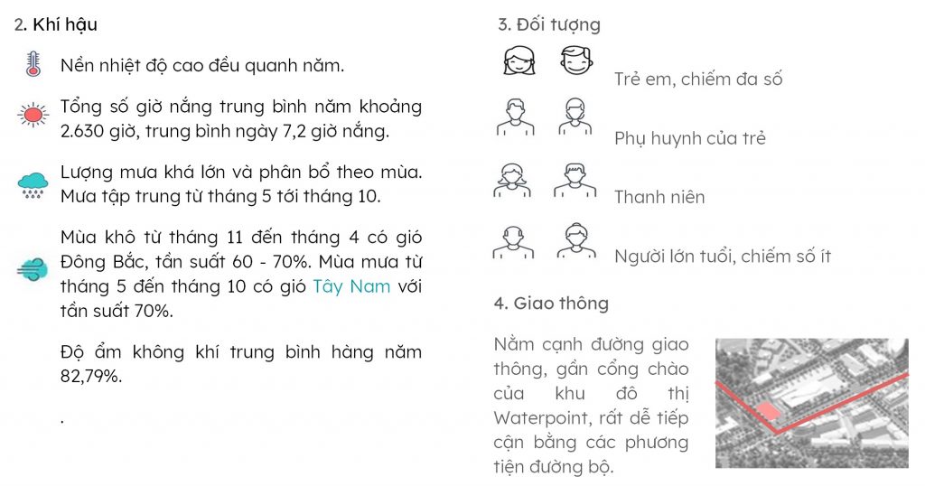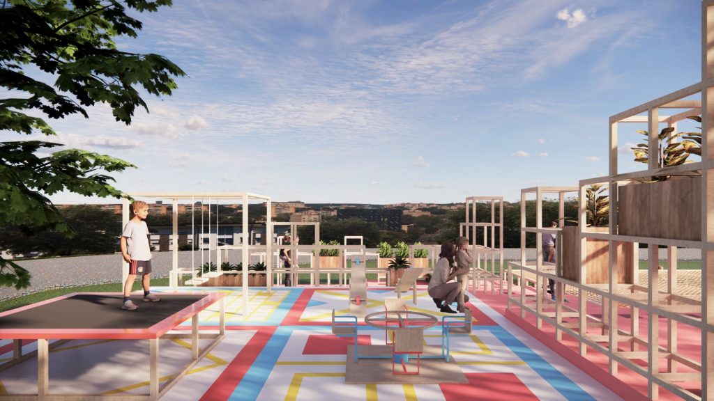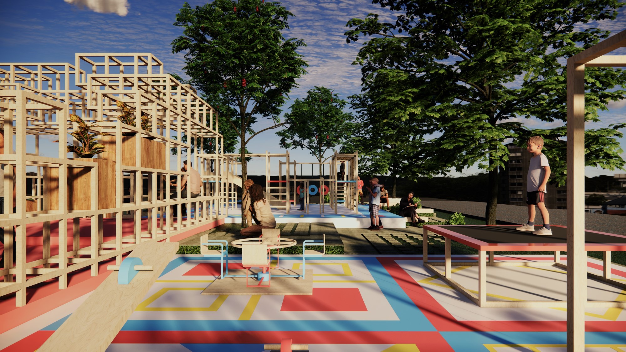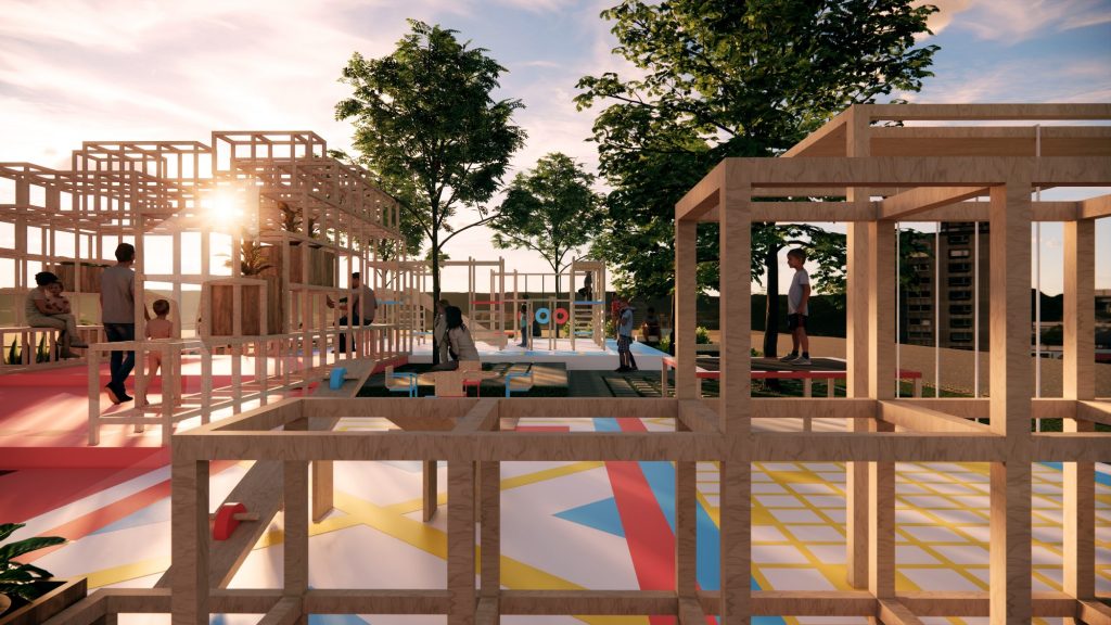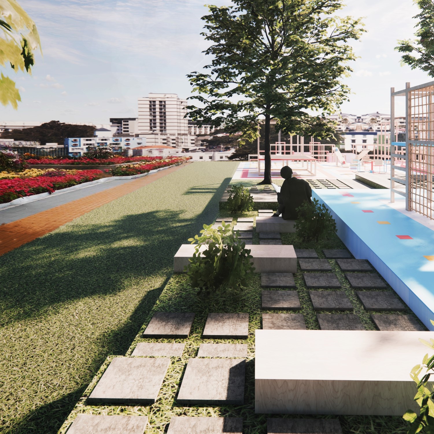 Lấy “Kết nối” làm ý tưởng chính toàn bài. Tạo dựng một sân chơi tăng sự tương tác giữa con người với con người, sử dụng vật liệu địa phương, bền vững, dễ tìm, kinh phí thấp.