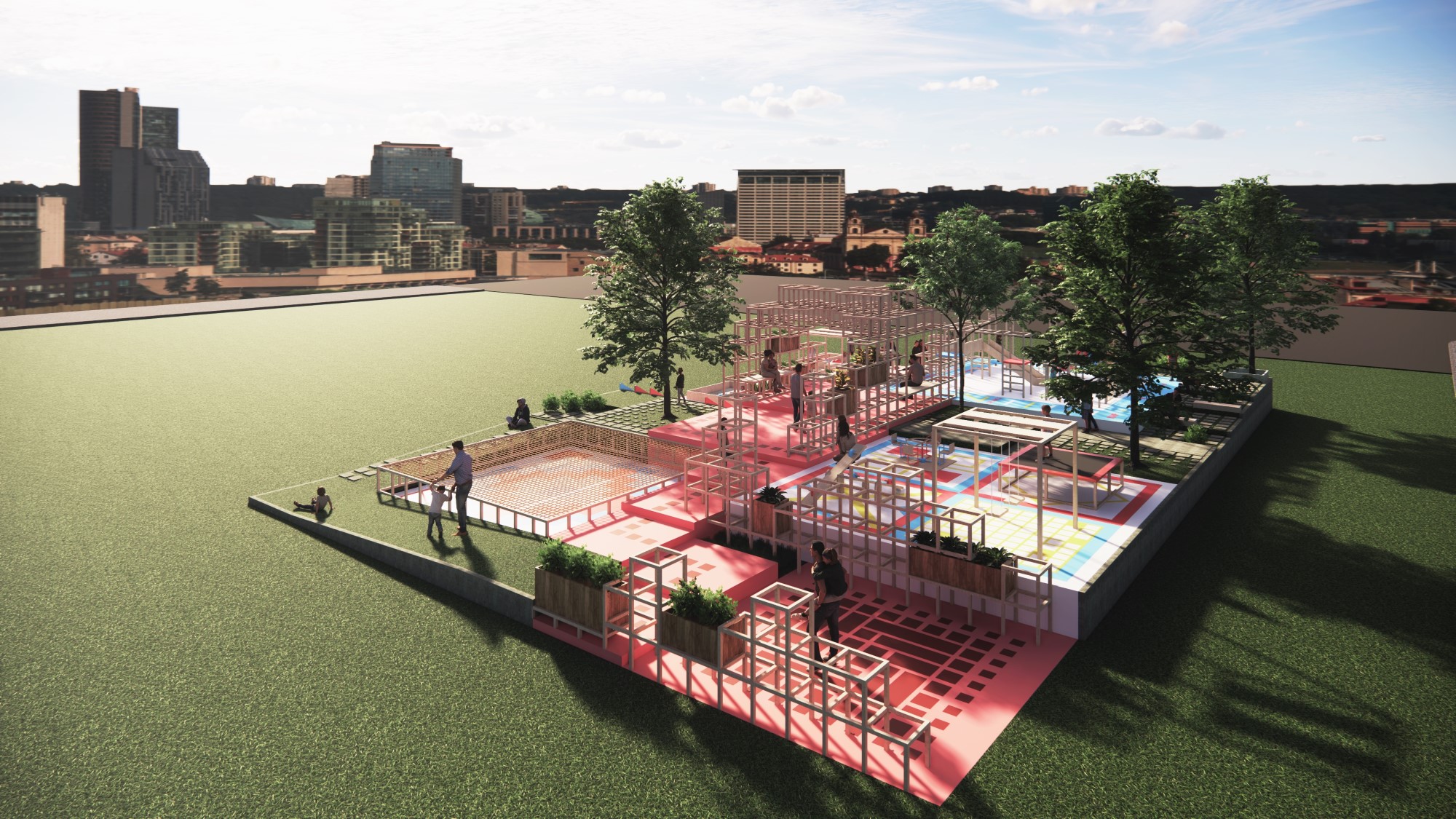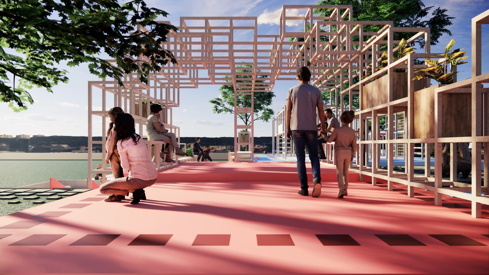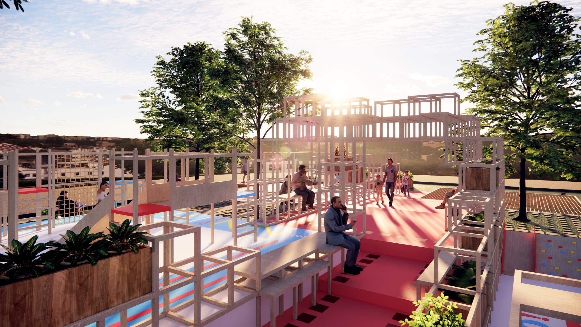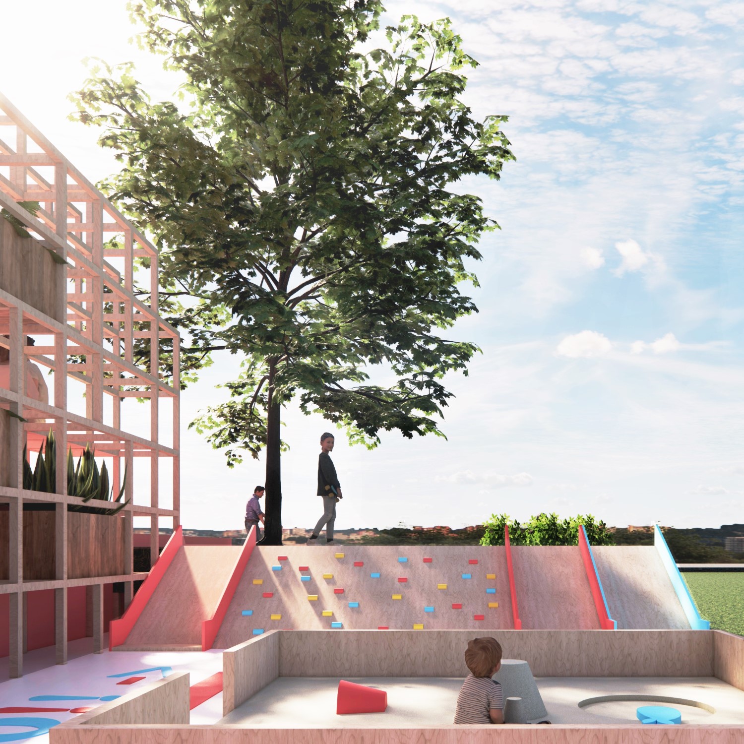 Lấy “Kết nối” làm ý tưởng chính toàn bài. Tạo dựng một sân chơi tăng sự tương tác giữa con người với con người, sử dụng vật liệu địa phương, bền vững, dễ tìm, kinh phí thấp.