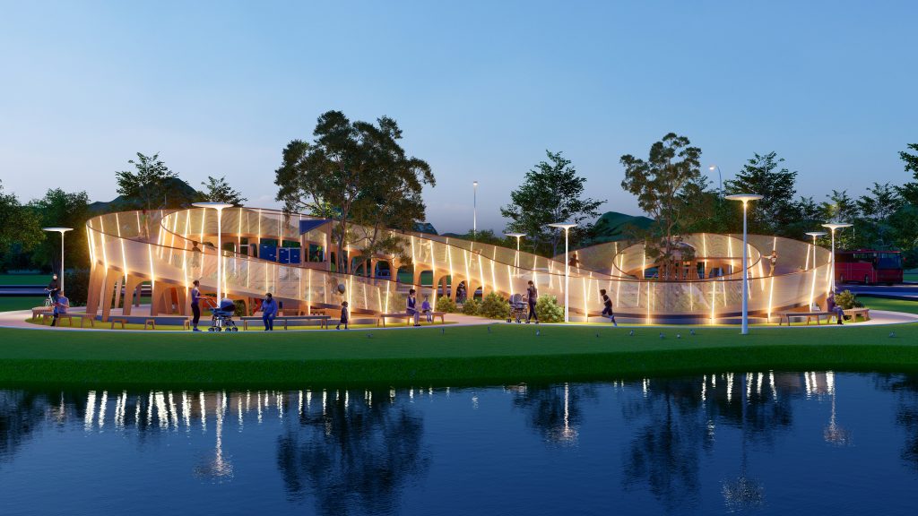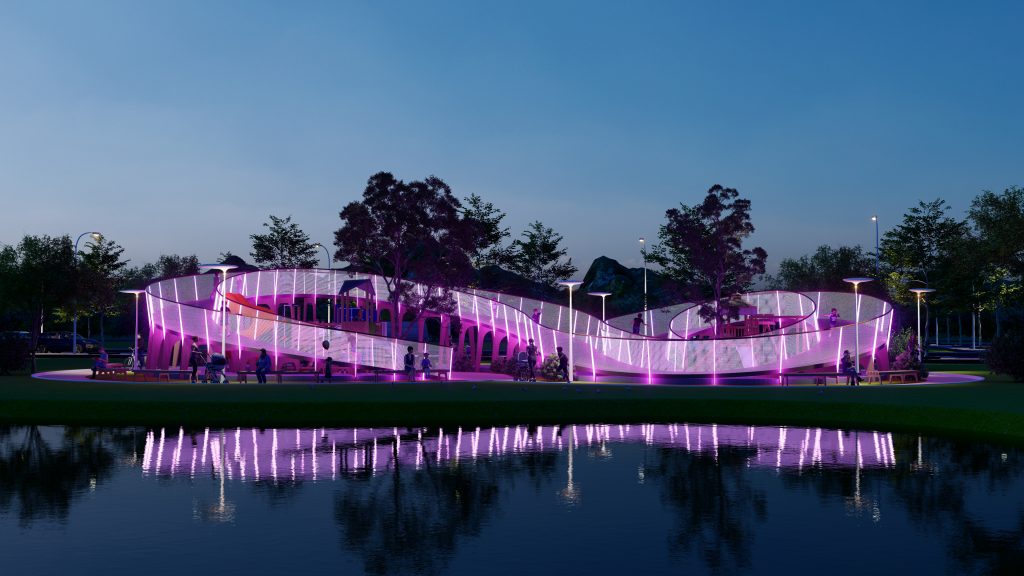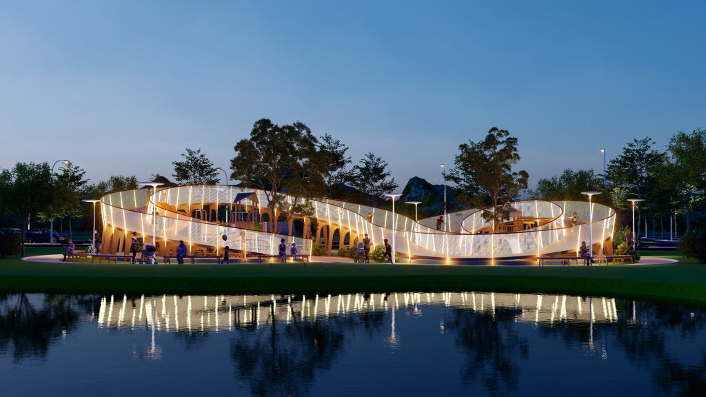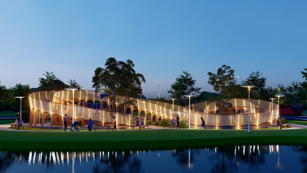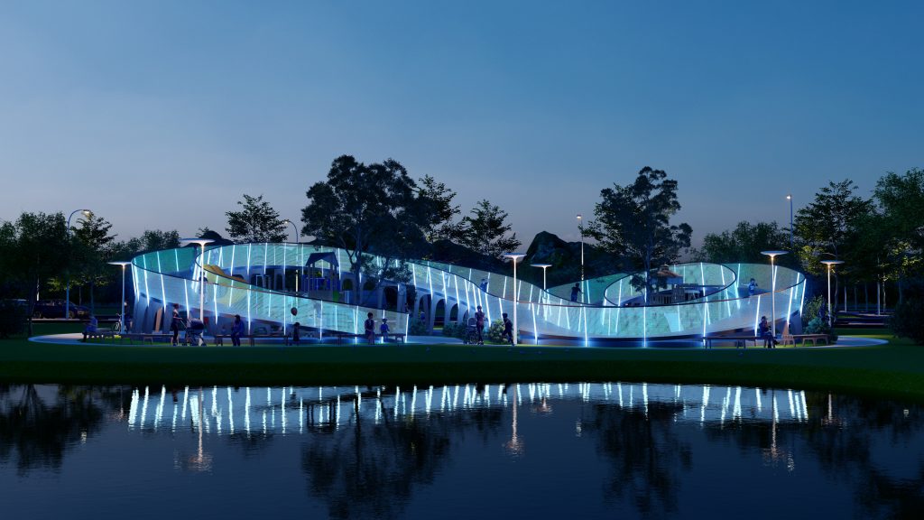 Lấy ý tưởng từ nước và các đường nét uốn lượn trong chính tên của dự án Waterpoint, kiến trúc sư Trương Trọng Phát tạo ra không gian playground hoạt động tuyến tính nằm khơi gợi sự sáng tạo, khám phá và định hình tính cách năng động của trẻ.