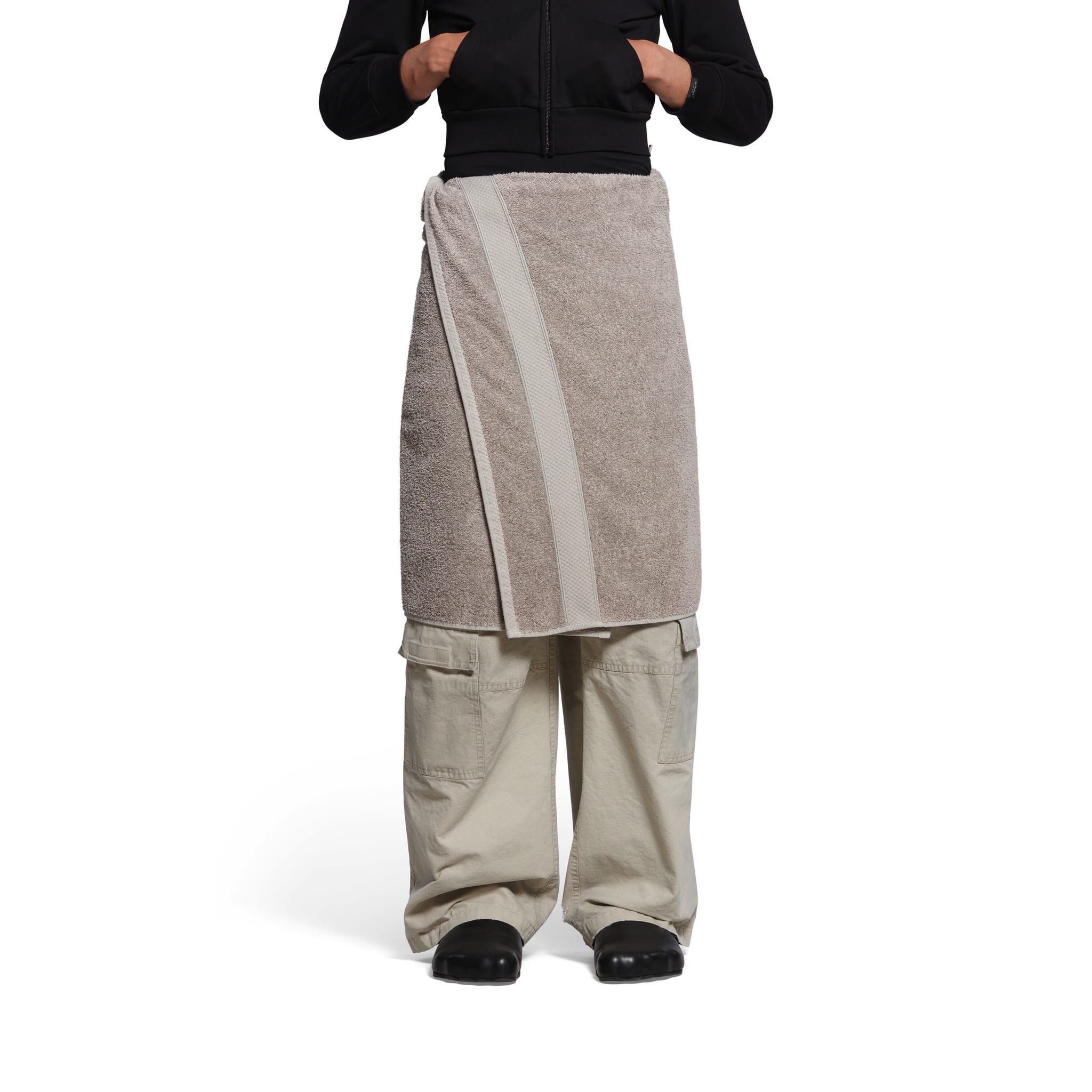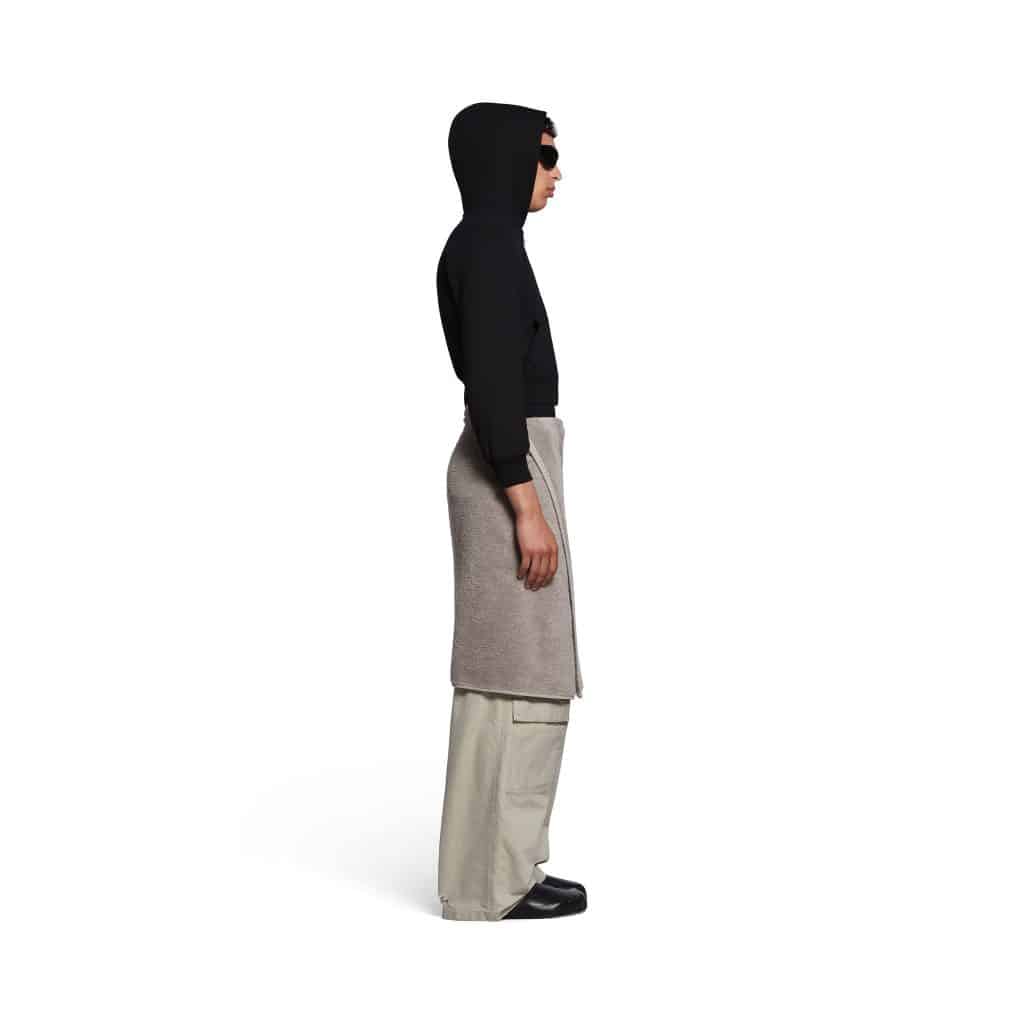 Nằm trong bộ sưu tập Xuân 2024, Balenciaga Towel Skirt là một món đồ unisex có hai nút ở eo và một chiếc thắt lưng có khóa bên trong. Với chiều dài đến đầu gối, chiếc “váy” là một bản cập nhật thời trang cao cấp hơn cho chiếc khăn tắm thường ngày ở nhà. “Cao cấp như thế nào ư?”, chắc nhiều người sẽ thắc mắc. Câu trả lời là nó cần được giặt khô và có mức giá tận 925 USD.