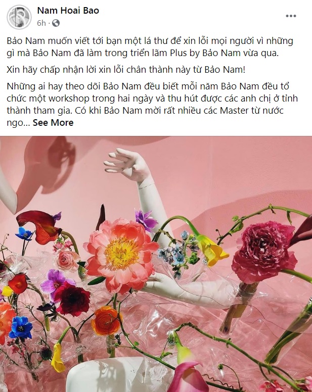 Sau nhiều ngày “lùm xùm đạo nhái” tác phẩm của triển lãm Plus by Bao Nam, sự việc vẫn tiếp tục nhận được nhiều quan tâm của giới chuyên môn và cộng đồng sáng tạo. Gần như hoàn toàn im lặng, không có bất kỳ phản hồi nào về sự việc này ngoại trừ phát ngôn “Nghệ thuật vốn là kế thừa và phát triển” với báo Kênh 14, thì mới đây, Bảo Nam – tác giả triển lãm Plus by Bao Nam đã chính thức lên tiếng và công khai xin lỗi khán giả, tác giả qua bài đăng trên trang cá nhân của mình.