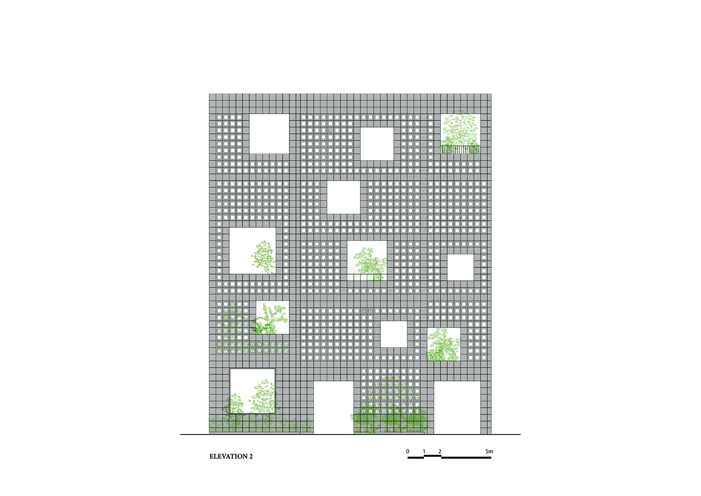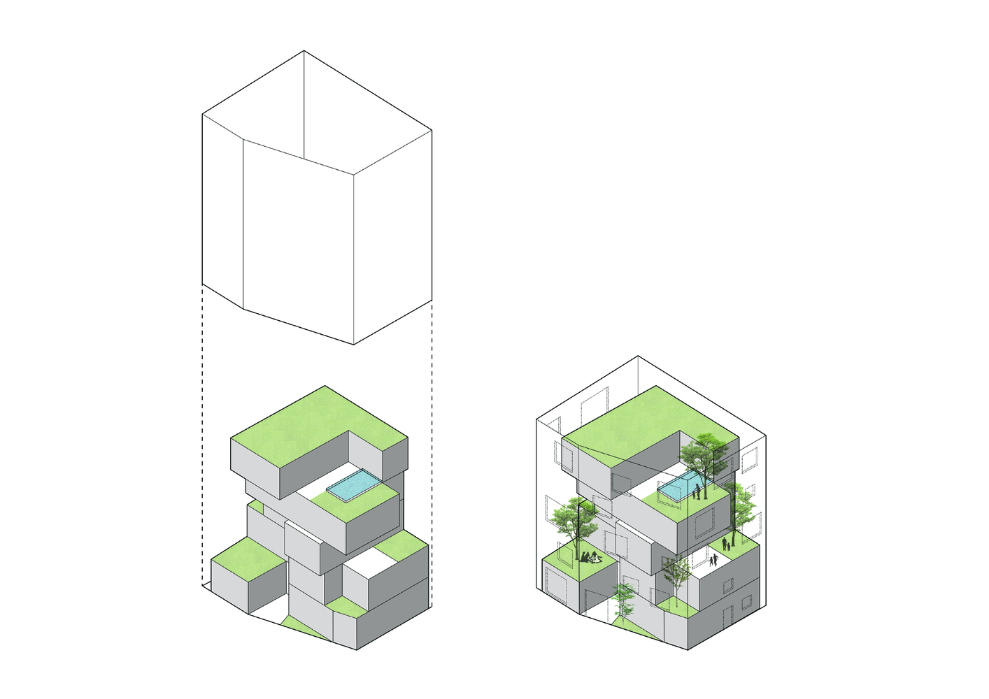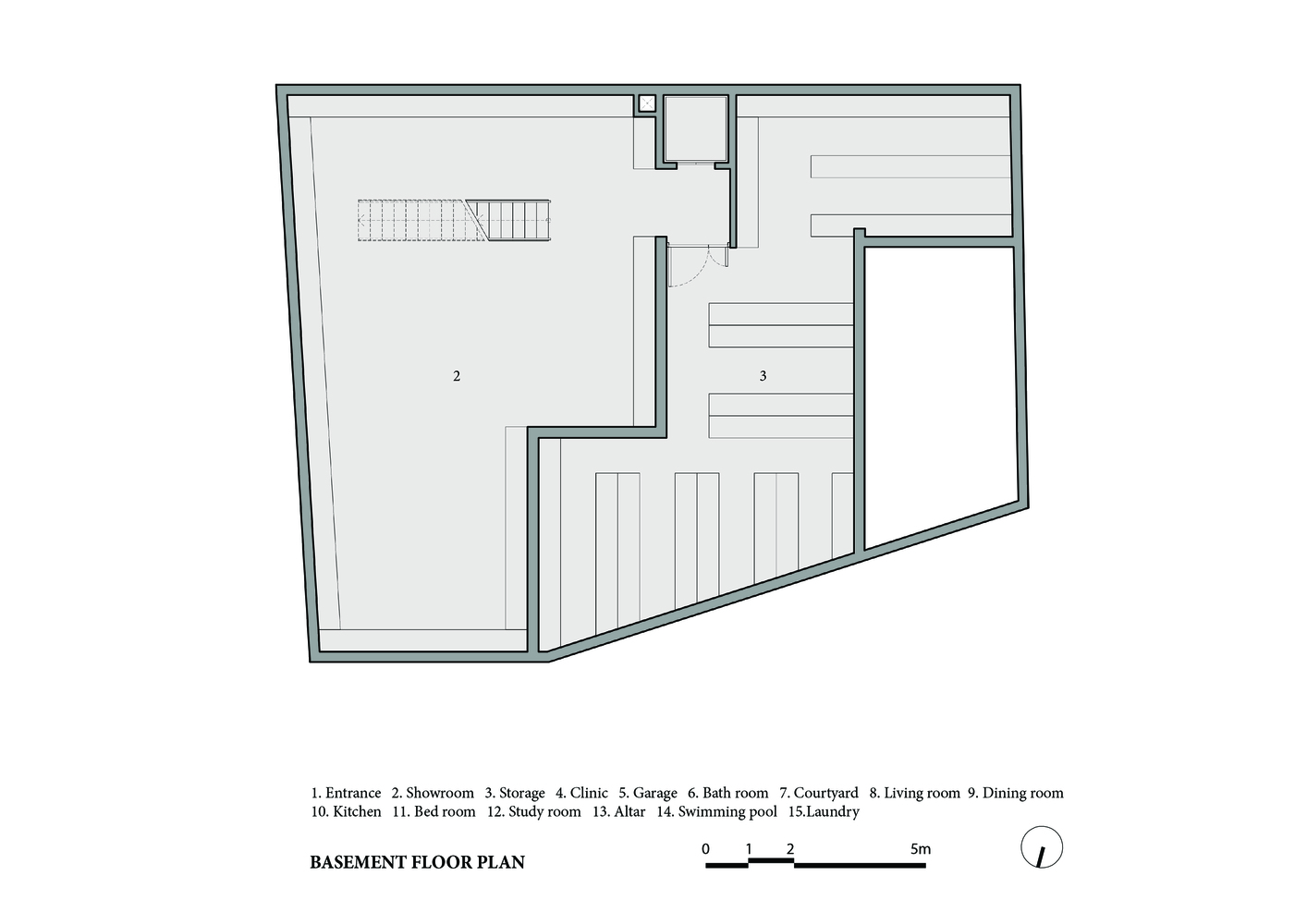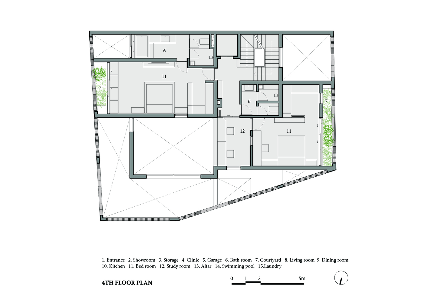Sự sắp xếp không gian của ngôi nhà cũng dựa trên ngôi nhà lý tưởng của chủ nhân, nơi thiên nhiên đan xen với các chức năng khác của ngôi nhà.