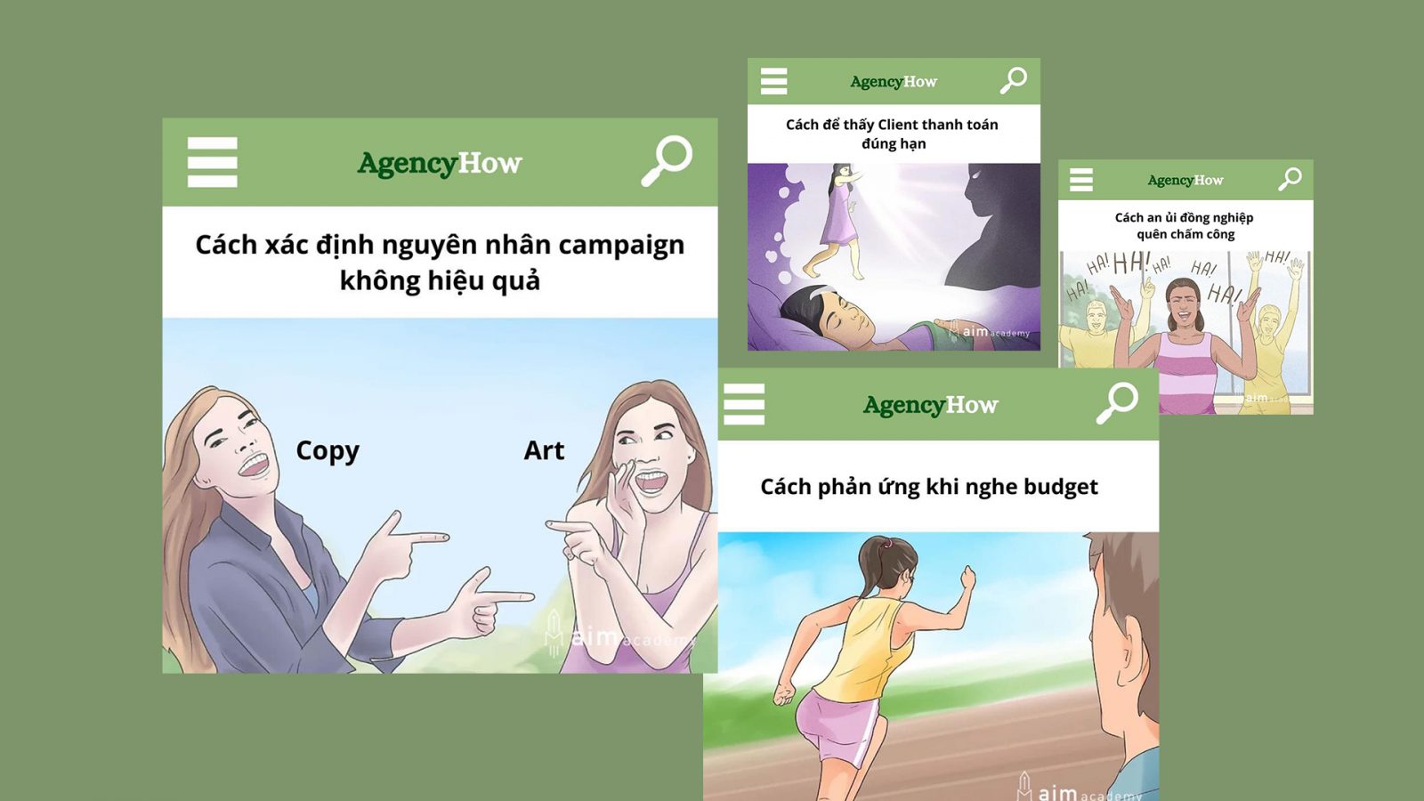 Những bài học bổ ích cho những ai làm ngành Agency theo phong cách của wikihow. Bộ ảnh hài hước nhưng cũng rất đánh trúng insight của “dân ngành” mang đến bởi AIM Academy.