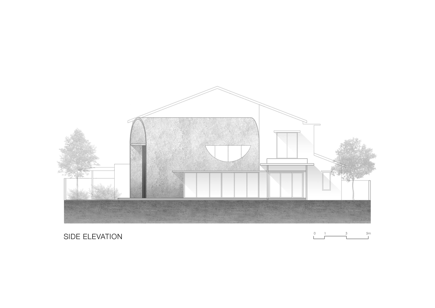 Nhóm KTS đã thiết kế một hình thức mới đơn giản nhưng táo bạo; tương phản nó với kết cấu hiện có của những ngôi nhà vùng ngoại ô nhiệt đới xung quanh. Một mái vòm được kéo dài ra bên ngoài, tạo ra một khu phụ hình vòm đồng thời tạo thành các không gian sống.