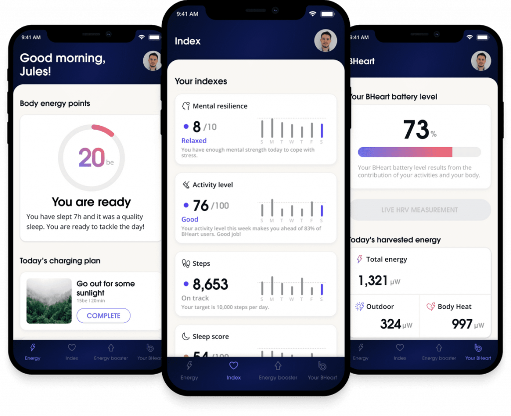 Năng lượng này sau đó sẽ được cung cấp cho một loạt các cảm biến để thu thập dữ liệu liên quan đến sức khỏe, mức độ hoạt động, giấc ngủ và tinh thần của người đeo. Ngoài ra, BHeart còn có thể đưa ra lời khuyên được cá nhân hóa để cải thiện lối sống hàng ngày của bạn.