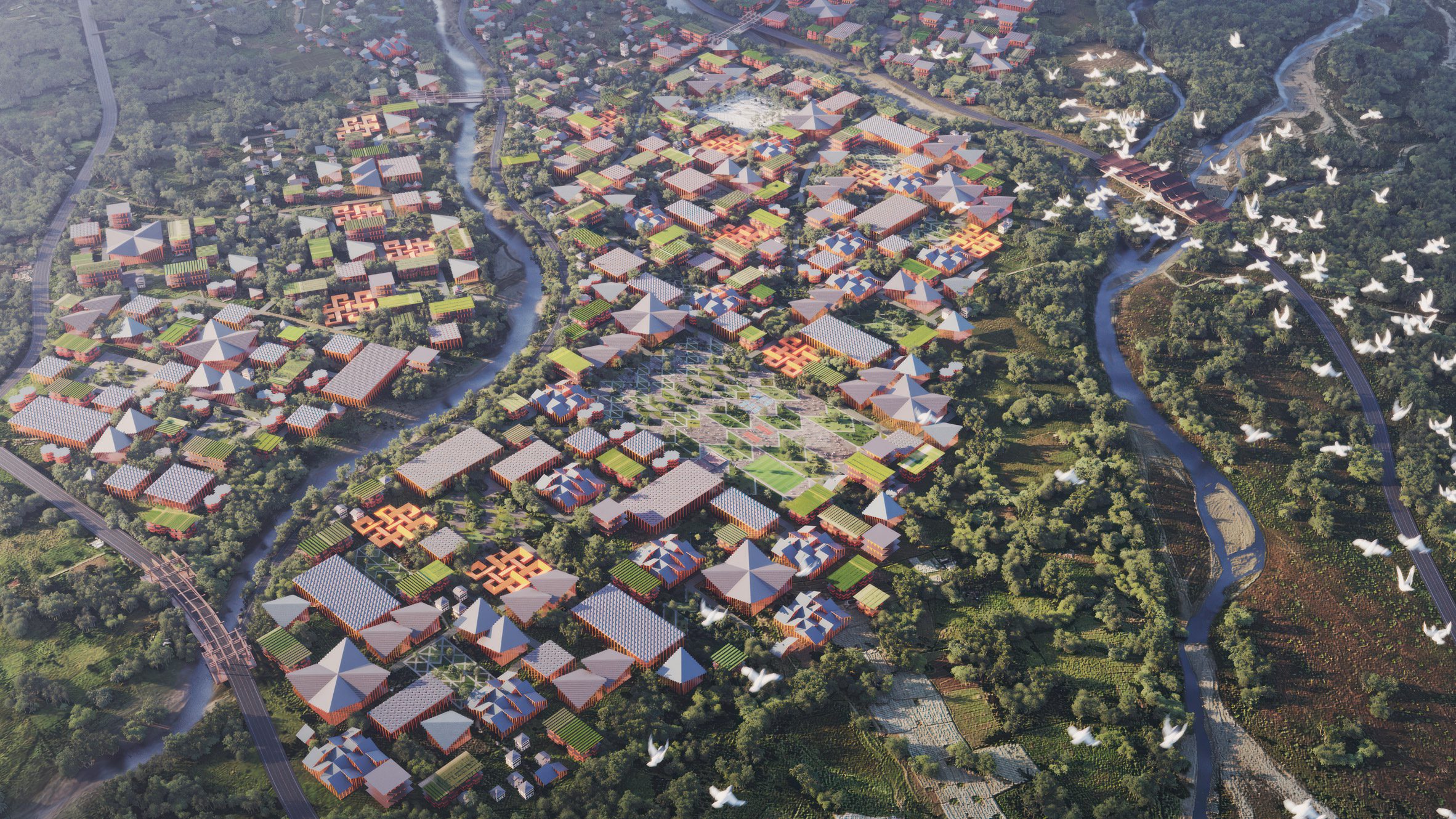 Theo studio, có 35 con sông và suối sẽ chảy qua khu đất và dự án sẽ được kết nối bằng một loạt những “cây cầu có thể ở được”. Mỗi cây cầu được thiết kế để kết hợp với các chức năng văn hóa, giáo dục, giải trí và cơ sở hạ tầng.
