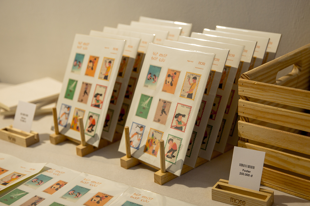 Để giữ cho người xem có được trải nghiệm gần gũi, đúng với tinh thần của buổi showcase, Ngân Bùi đã không ngần ngại dành ra khá nhiều thời gian để quyết định chất liệu in ấn cho tác phẩm của mình.