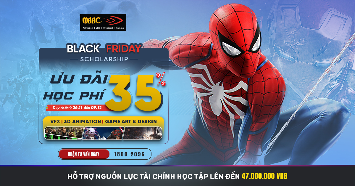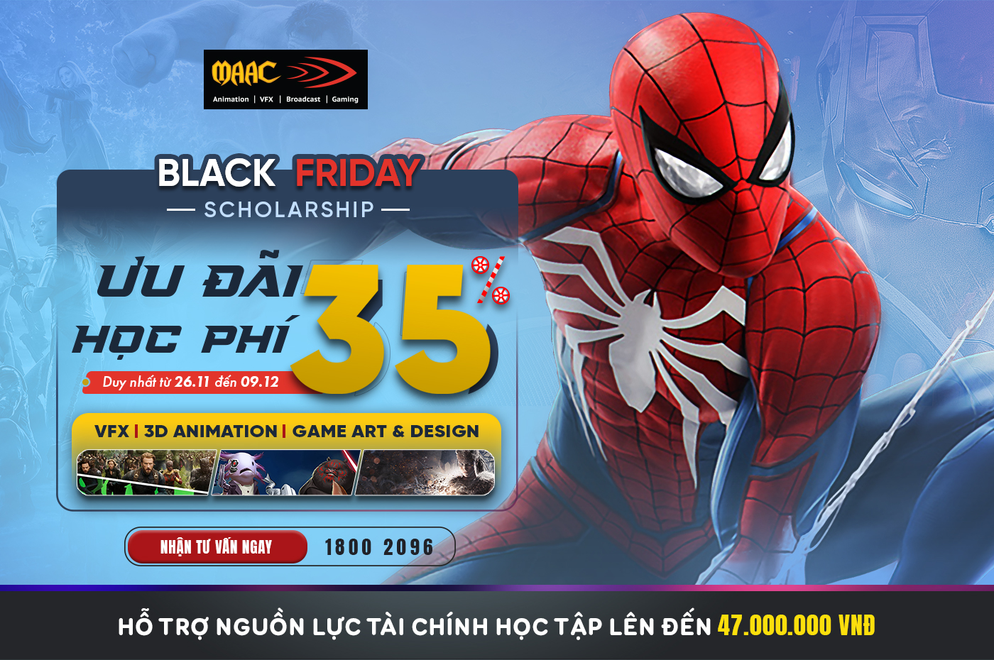 Trong không khí sôi nổi của mùa Black Friday đang gần kề, bạn có những dự định nào cho bản thân mà chưa thực hiện được không? Cùng hiện thực hóa ước mơ trong những ngày cuối cùng của năm với món quà đặc biệt Học viện MAAC gửi trao đến những bạn trẻ khát khao chinh phục ngành 3D Animation, VFX và Game Art & Design với Chương trình ưu đãi học phí lớn nhất năm lên đến 35% – BLACK FRIDAY SCHOLARSHIP.