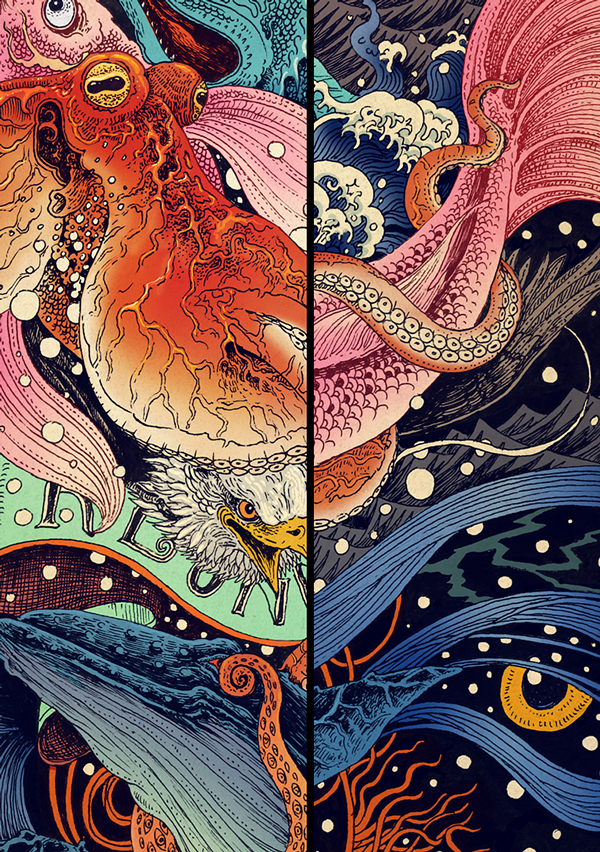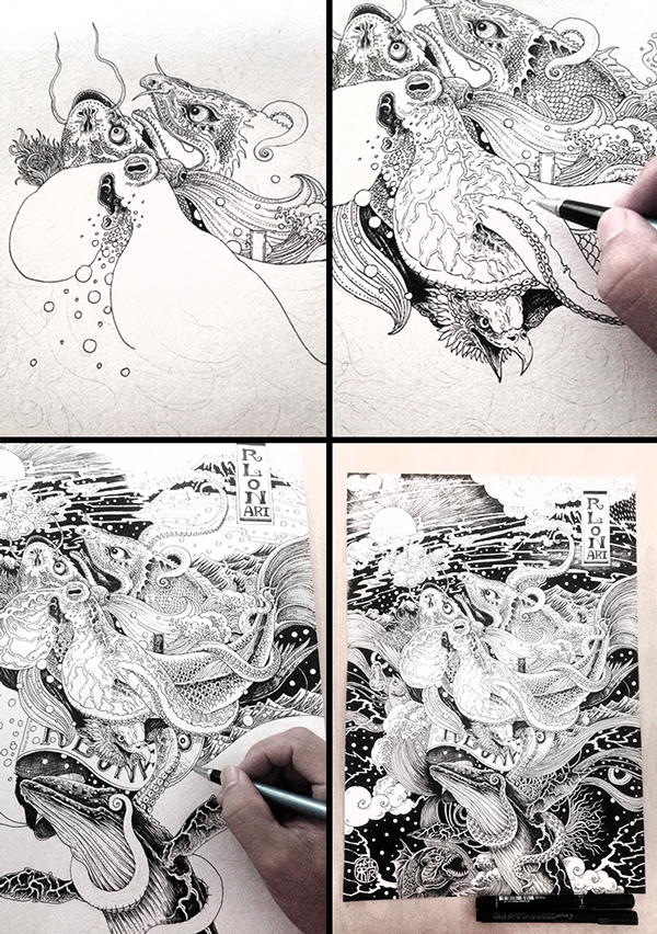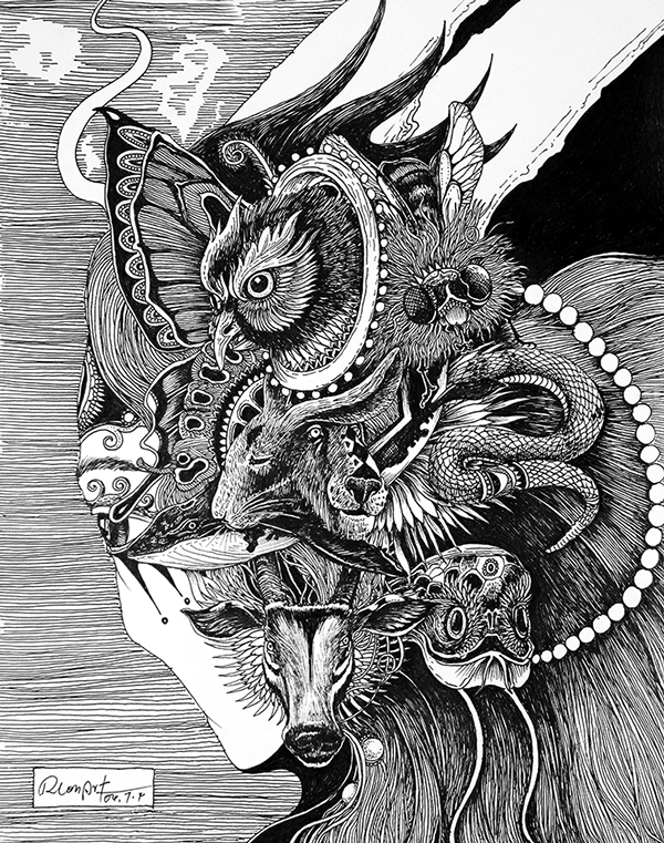Rlon Wang là một họa sĩ minh họa đến từ thành phố Thâm Quyến, Trung Quốc. Bộ ảnh “Thế Giới Tự Nhiên Mãnh Liệt” được tổng hợp 4 lối vẽ minh họa sâu sắc khác nhau về các loài động vật và sự cấu thành của thiên nhiên, tất cả đều được hòa trộn trong 1 lối vẽ độc đáo của Nhật Bản.