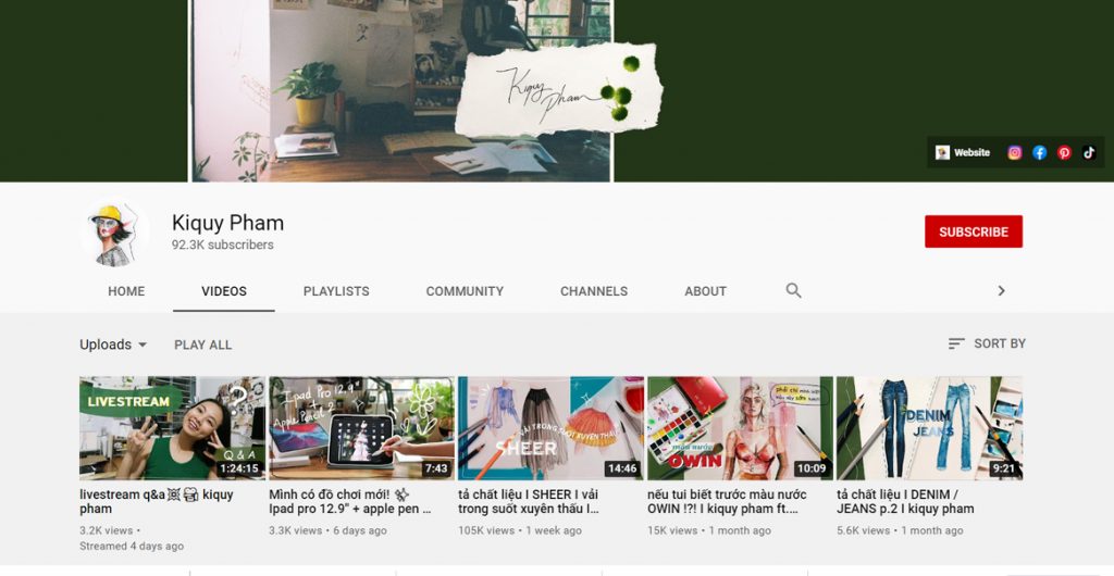 Là kênh của Kim Quyên, hay còn gọi là Kiquy, Quyên là hoạ sĩ vẽ thiết kế thời trang tự do tại Sài Gòn.