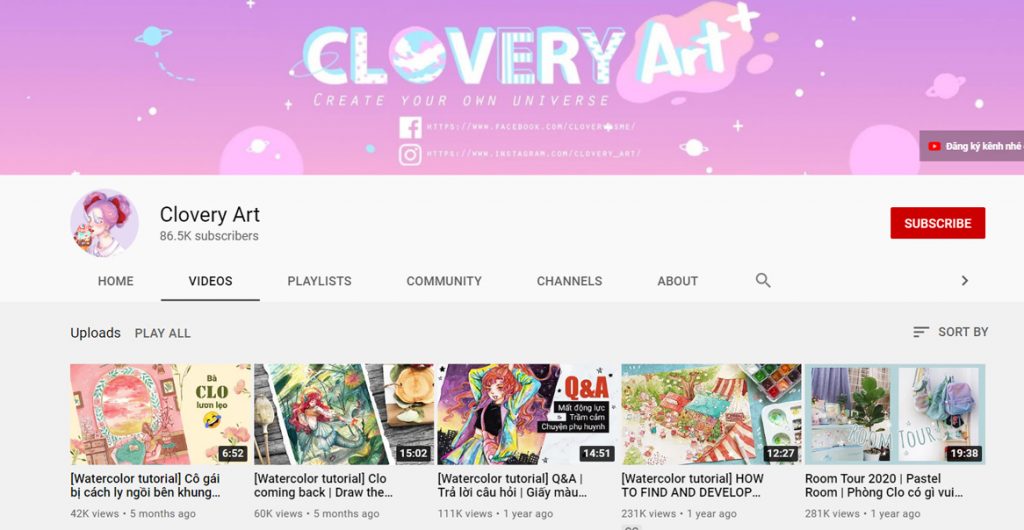 Kênh của nghệ sĩ Clovery Art, chia sẻ tất tần tật về vẽ vời, làm phụ kiện, diy hay thiết kế. Những thứ liên quan đến Art nghệ thuật.