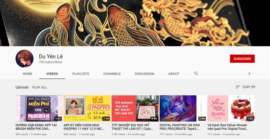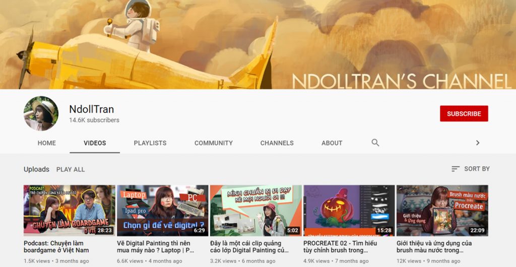 Là kênh của nghệ sĩ Trần Thu Hương (Ndoll Trần) với nhiều chủ đề đa dạng về thiết kế, digital painting,.. cùng nhiều thông tin sáng tạo thú vị khác.