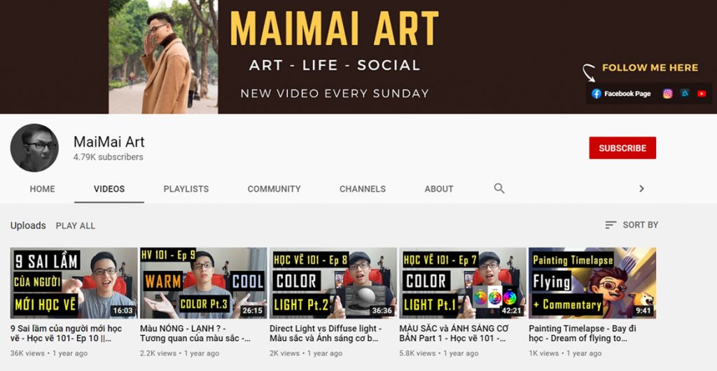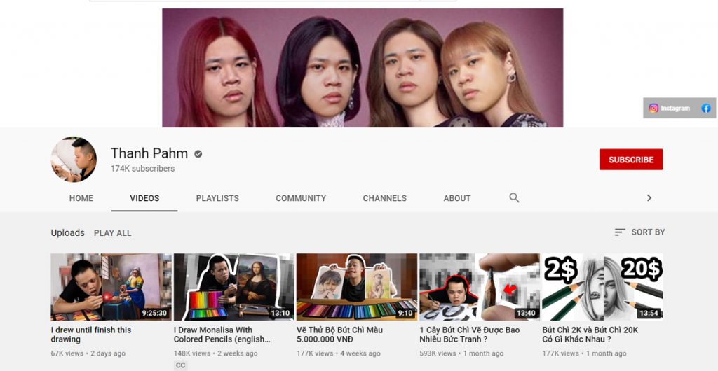 Kênh của họa sĩ Thành Phạm với nhiều chia sẻ thú vị về nghề vẽ, họa cụ, cách học vẽ,… và quá trình sáng tạo tác phẩm của anh.