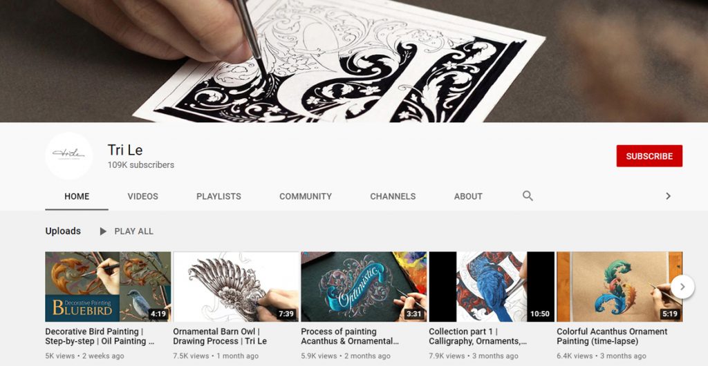 Kênh của nghệ sĩ calligraphy Lê Trí, do đó bạn sẽ tìm được nhiều kiến thức hay về vẽ chữ tại đây.