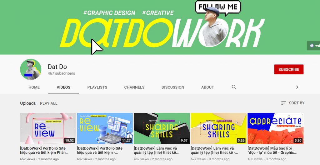 Bạn cần vài phút để nạp năng lượng sáng tạo, cập nhật những kiến thức mới sau hàng giờ lướt Youtube xem phim nghe nhạc? Bạn muốn biết ngành thiết kế sáng tạo ở Việt Nam và muốn kết nối, học hỏi nhiều hơn từ các artist, designer có kinh nghiệm. Vậy thì tạm pause nhạc hay phim lại, ghé thăm những kênh hay ho của các “artuber” của Việt Nam dưới đây. Với nhiều thể loại như từ design, illustration, logo, concept art, typography và nhiều chủ đề về thiết kế sáng tạo khác, các kênh Youtube này chắc chắn sẽ mang lại cho bạn nhiều kiến thức và cảm hứng mới.
