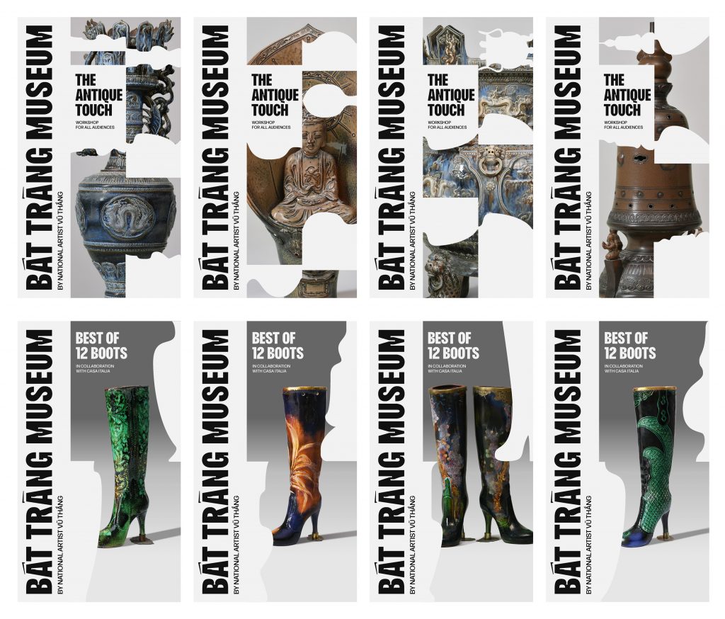 M – N Associates đã nghiên cứu và tìm hiểu theo qui trình kỹ nghệ độc đáo và phong cách riêng của bác Vũ Thắng trong việc tạo ra một diện mạo thương hiệu mới cho bảo tàng. Điều này bao gồm việc đổi tên bảo tàng và tạo ra một kiểu chữ riêng tên MN Vũ Thắng với các nét chạm “hồn giày gốm” bên trong inktrap từng con chữ. Chúng tôi muốn tái hiện quá trình và tác phẩm của ông đưa vào hệ thống nội dung và thiết kế y như cách bác đã làm với các tác phẩm.