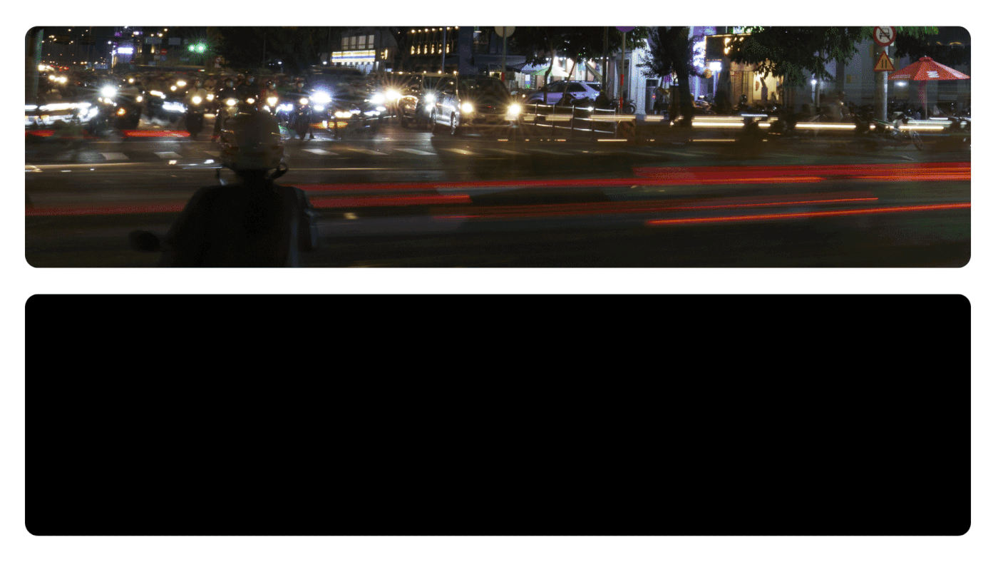 Sử dụng motion graphic, chúng tôi tạo ra thiết kế chuyển động riêng cho việc xuất hiện của kiểu chữ, lấy cảm hứng từ tốc độ nhanh của giao thông ở Việt Nam và hình ảnh sôi động, đầy màu sắc được ghi lại qua hình ảnh phơi sáng khi chụp đường phố Việt. Sự chuyển động này nhằm mục đích giới thiệu vẻ đẹp của lối sống ở Việt Nam một cách hấp dẫn và năng động.