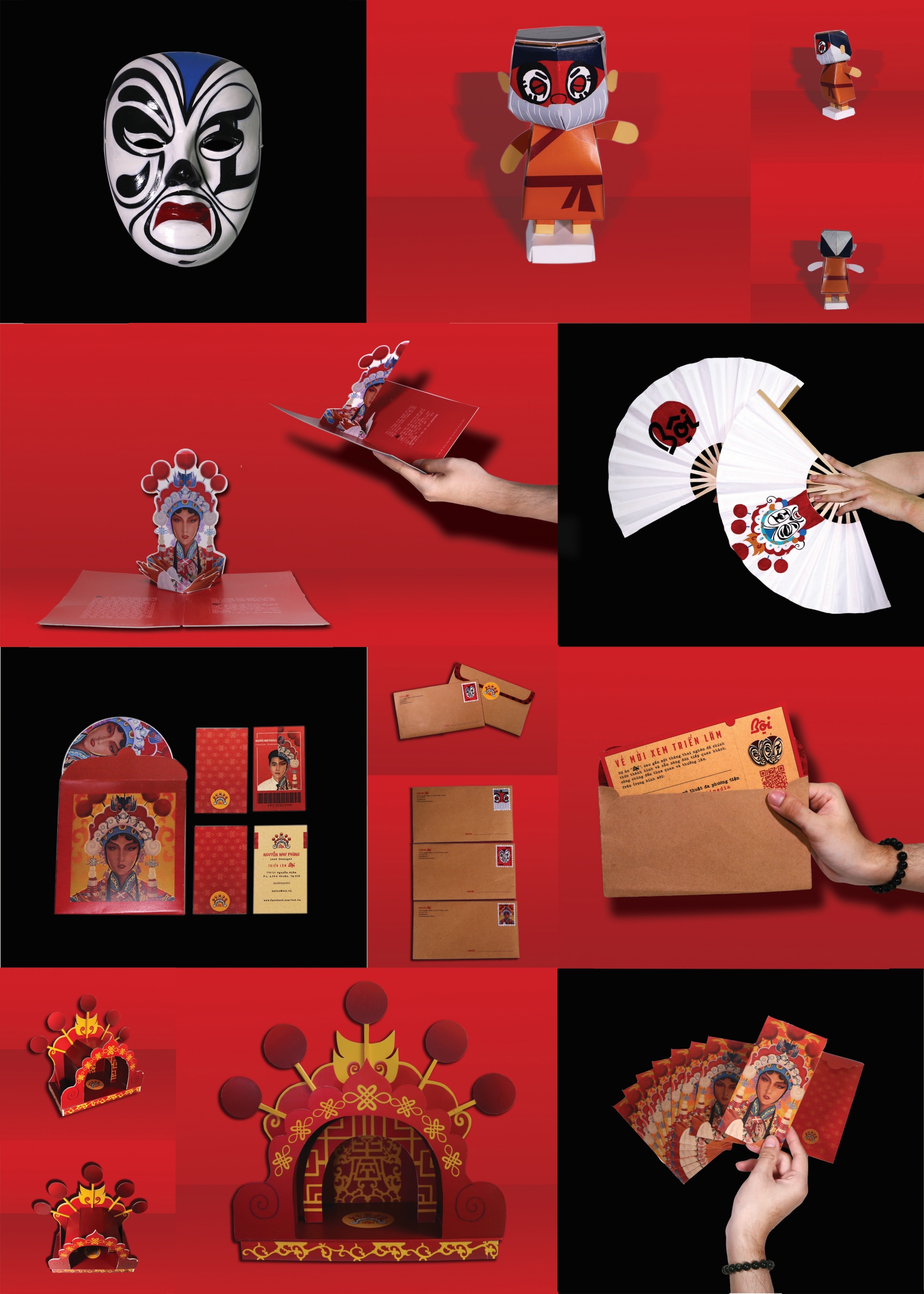 Thông qua những sản phẩm nghệ thuật trên nhiều chất liệu khác nhau, bộ nhận diện mang âm hưởng thời đại nhưng vẫn giữ được linh hồn, cốt cách của hát bội truyền thống. Thú vị hơn cả, toàn bộ bộ nhận diện sản phẩm này do chính Phong thực hiện và lên ý tưởng.