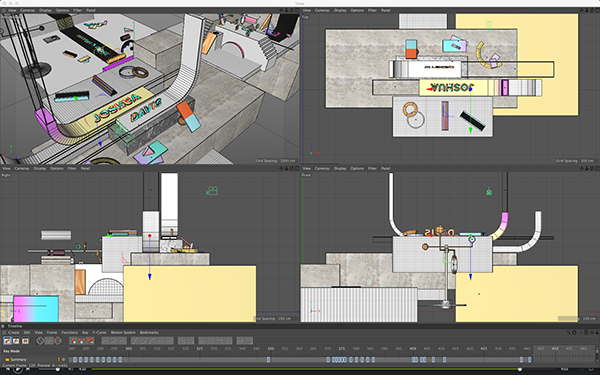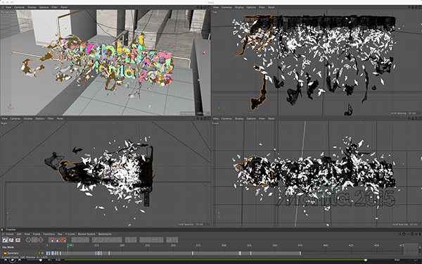 Các kí tự đầu tiên được phát triển trong Adobe Illustrator. Sau đó, các chữ cái được thiết kế lại tỉ mỉ hơn trước khi được nhập vào Maxon Cinema 4D, nơi chúng được làm thêm texture, hiệu ứng và chuyển động.