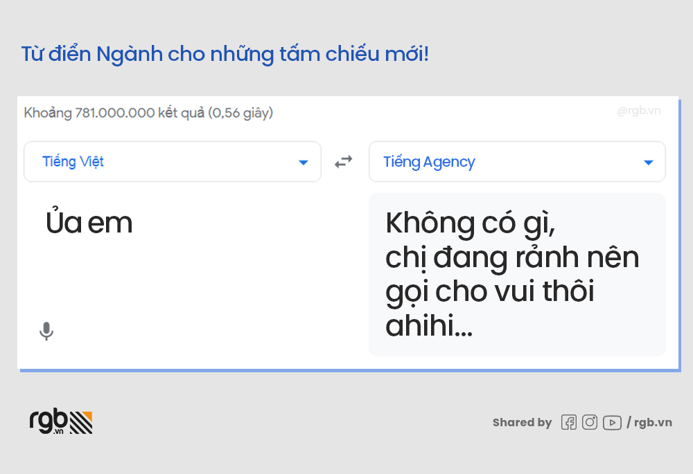 Hỡi những chiếc chiếu mới trong ngành quảng cáo, nếu bạn vẫn chưa “thấm” hai từ “Ủa em” thì hãy cập nhật ngay từ điển Ngành dưới đây cùng RGB Bon Trend nhé!