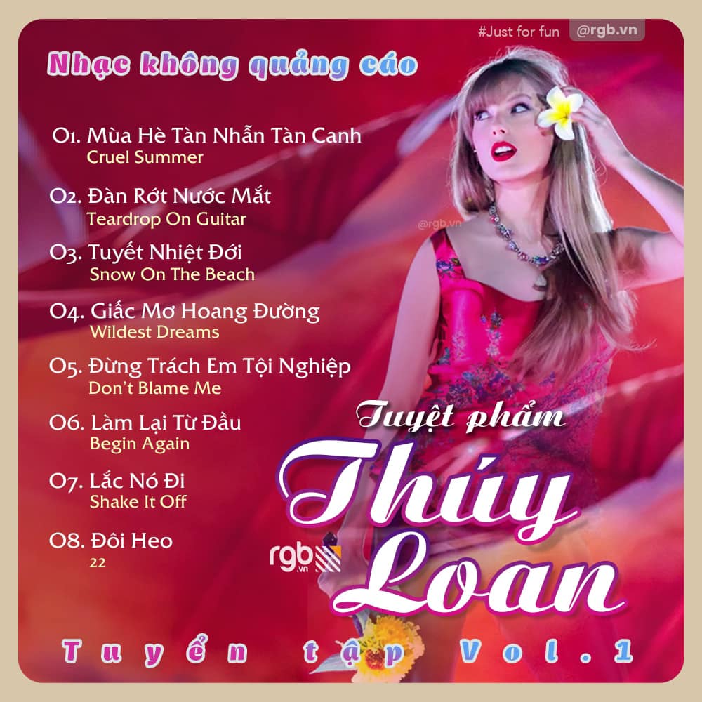 Tuyển tập tuyệt phẩm của gương mặt hội chợ hải ngoại Thuý Loan (Taylor Swift) với giọng hát làm say mê người nghe.