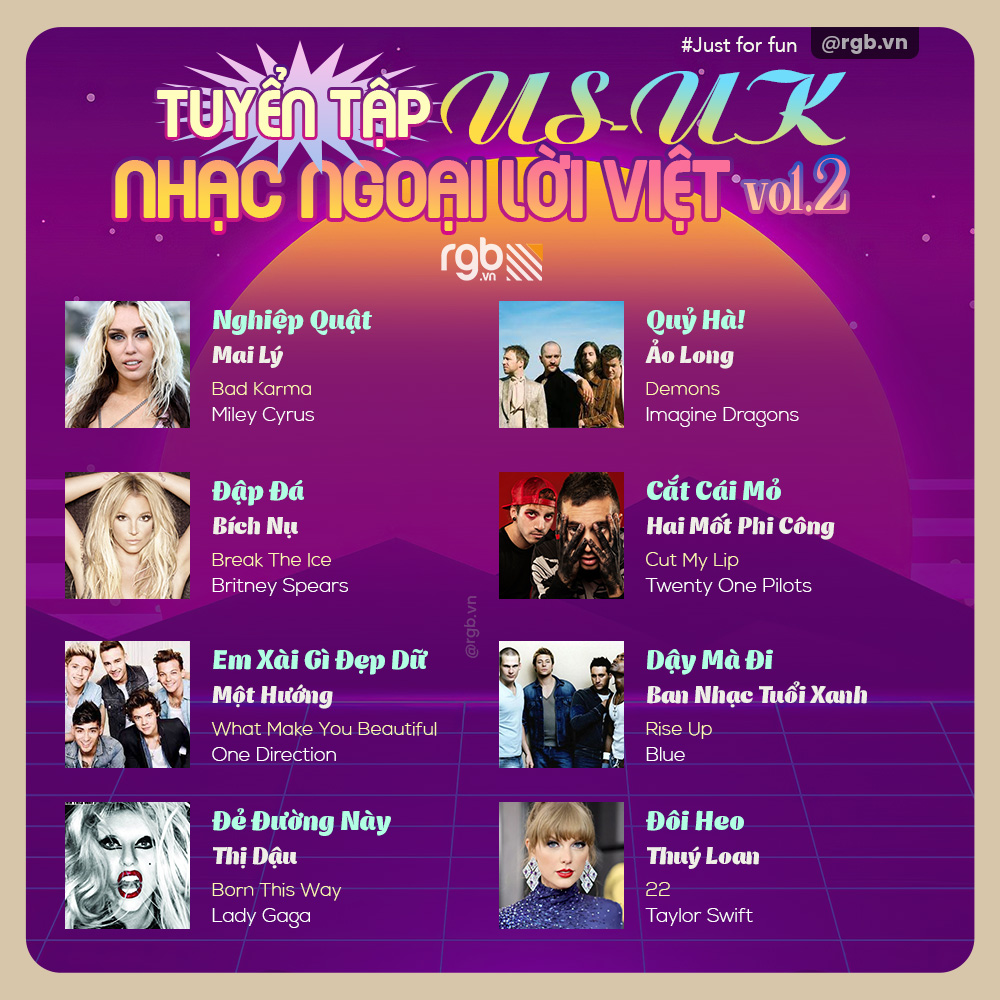 The Weeknd với tên thuần Việt là “Tuấn Cùi”, Taylor Swift được đặt cho biệt danh gần gũi là “giọng ca hội chợ Thuý Loan”, BLACKPINK với tên gọi thân thương Hắc Hường, BigBang – “Vụ Nổ Lớn”,… với những bài hát không thể Việt Nam hơn. Cùng xem qua nhé!