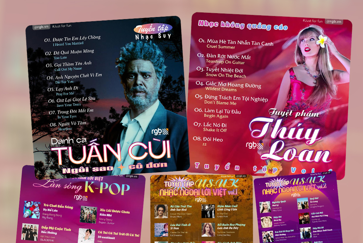 Với nhiều ý tưởng thú vị và hài hước được gợi ý bởi các thành viên của cộng đồng sáng tạo, RGB đã thực hiện một loạt album “tuyển tập nhạc hải ngoại lời việt” với những gương mặt ca sĩ đình đám.