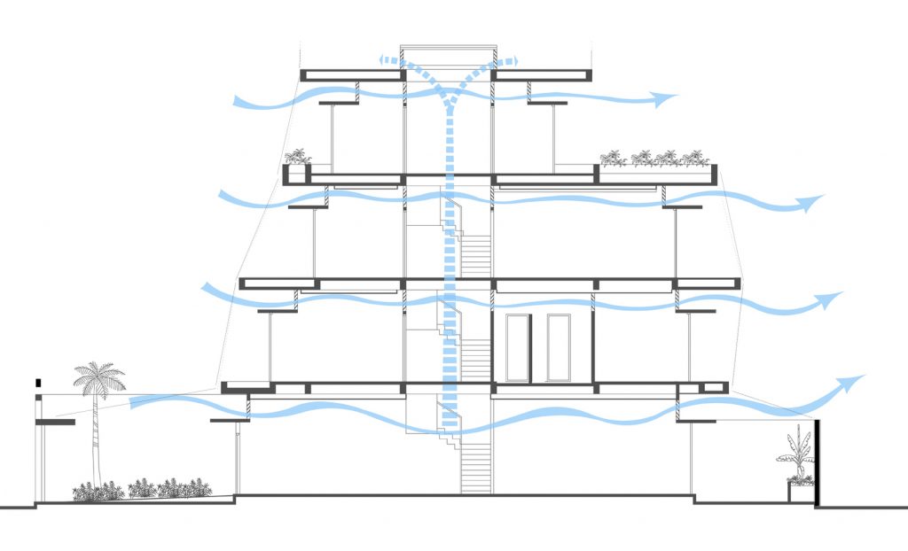 Cửa sổ và cửa chính được mở vào ban ngày trong hầu hết các ngôi nhà Việt Nam để thông gió, nhưng phải đóng vào ban đêm để đảm bảo an ninh. Với Breeze House, lưới thép bao bọc bên ngoài của tất cả các ban công, vì vậy cửa sổ và cửa ra vào có thể vẫn mở vào mọi lúc nếu muốn.