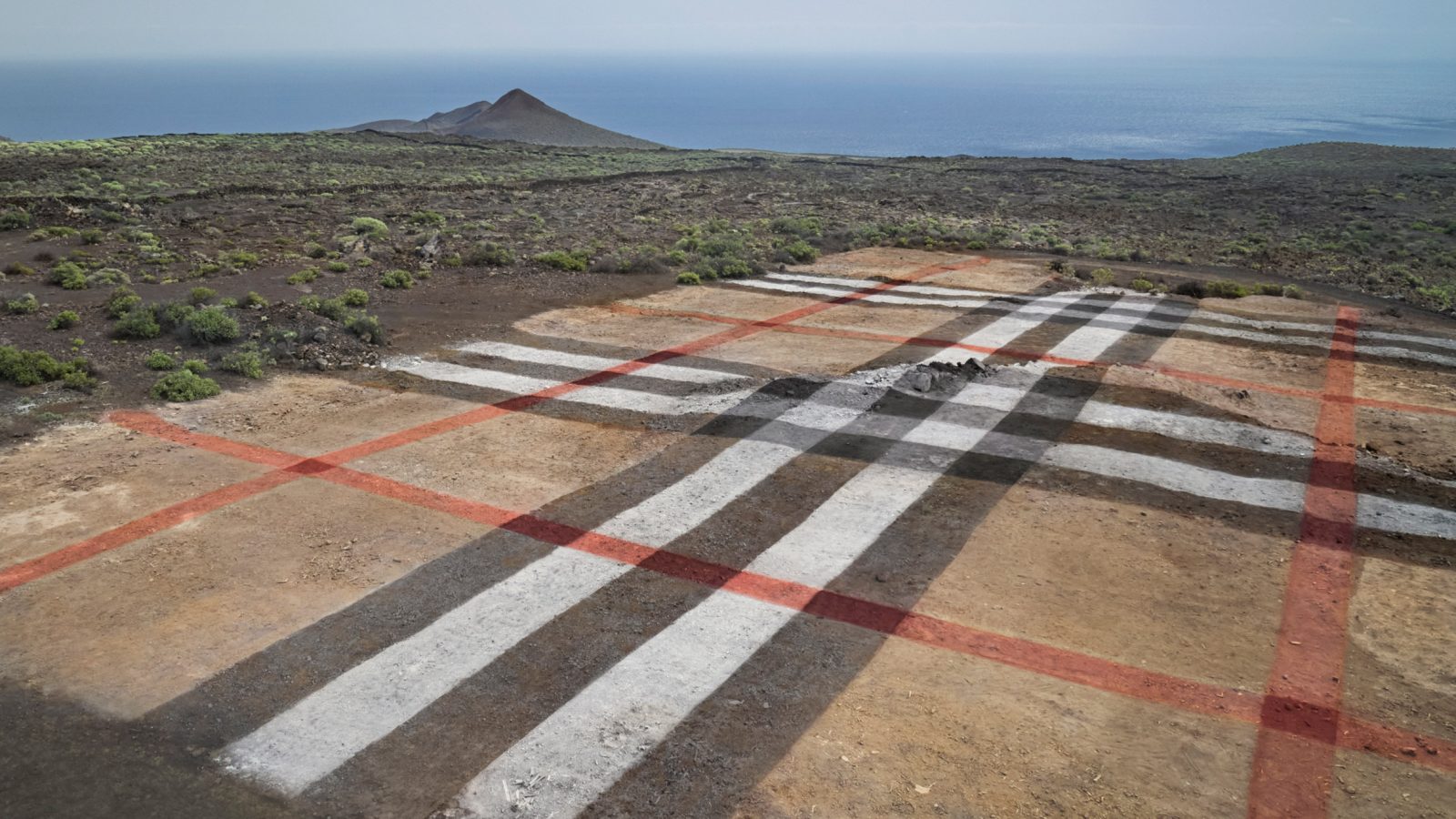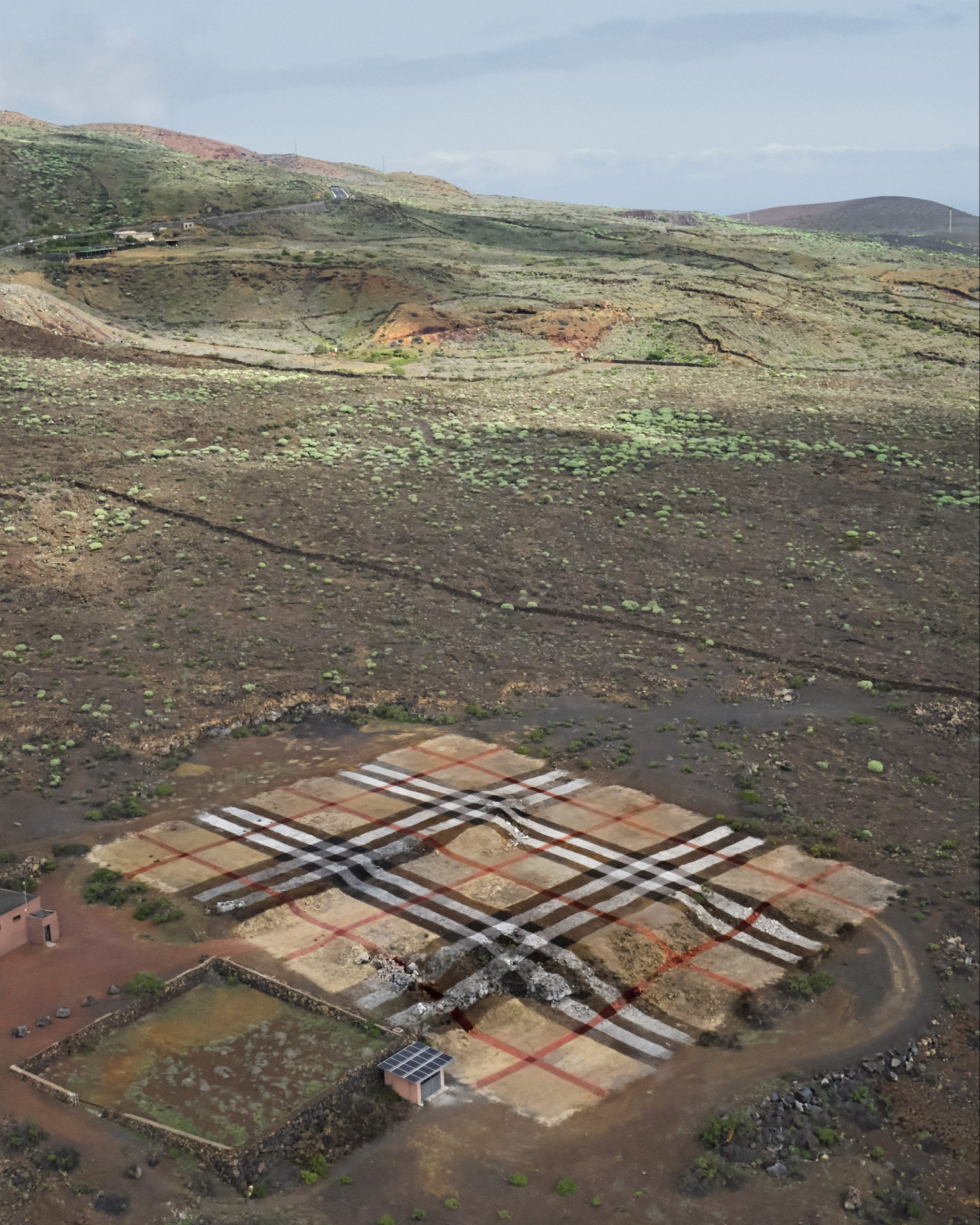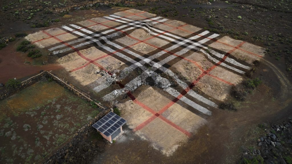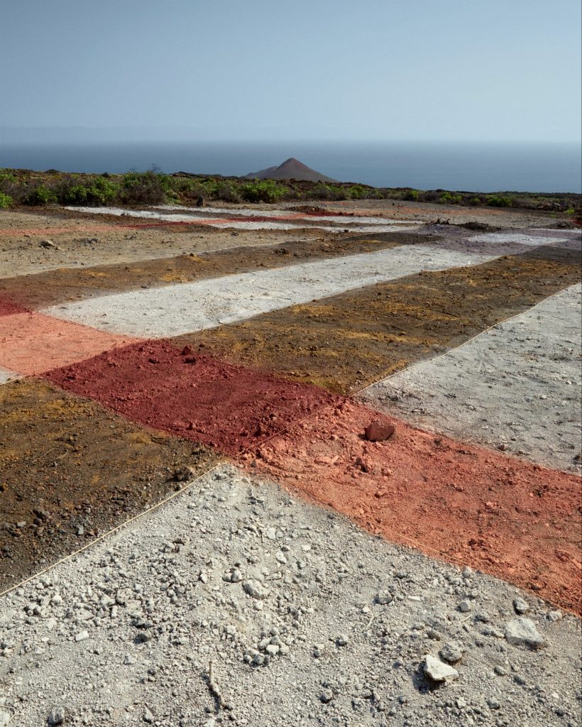Tác phẩm đầu tiên được thực hiện bởi nghệ sĩ người Mỹ gốc Cuba Jorge Rodriguez-Gerada vào tháng 11 năm ngoái và tồn tại trong khoảng một tuần trước khi bị gió và nước mưa cuốn đi. Rodriguez-Gerada đã sử dụng một loại sơn tự nhiên có nguồn gốc từ sữa để tạo ra một phiên bản rộng 4.500 mét vuông của họa tiết kẻ caro nổi tiếng của Burberry trên ngọn núi lửa ở đảo El Hierro thuộc Quần đảo Canary. Đây cũng là hòn đảo tự cung tự cấp đầu tiên trên thế giới sử dụng gió là nguồn năng lượng chính để hoạt động.