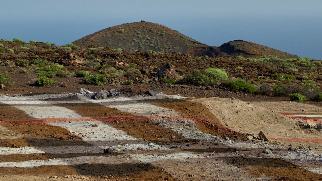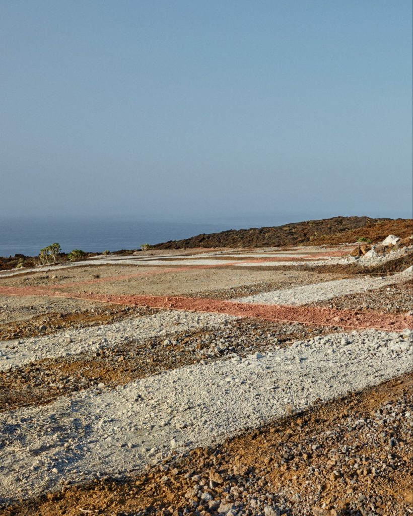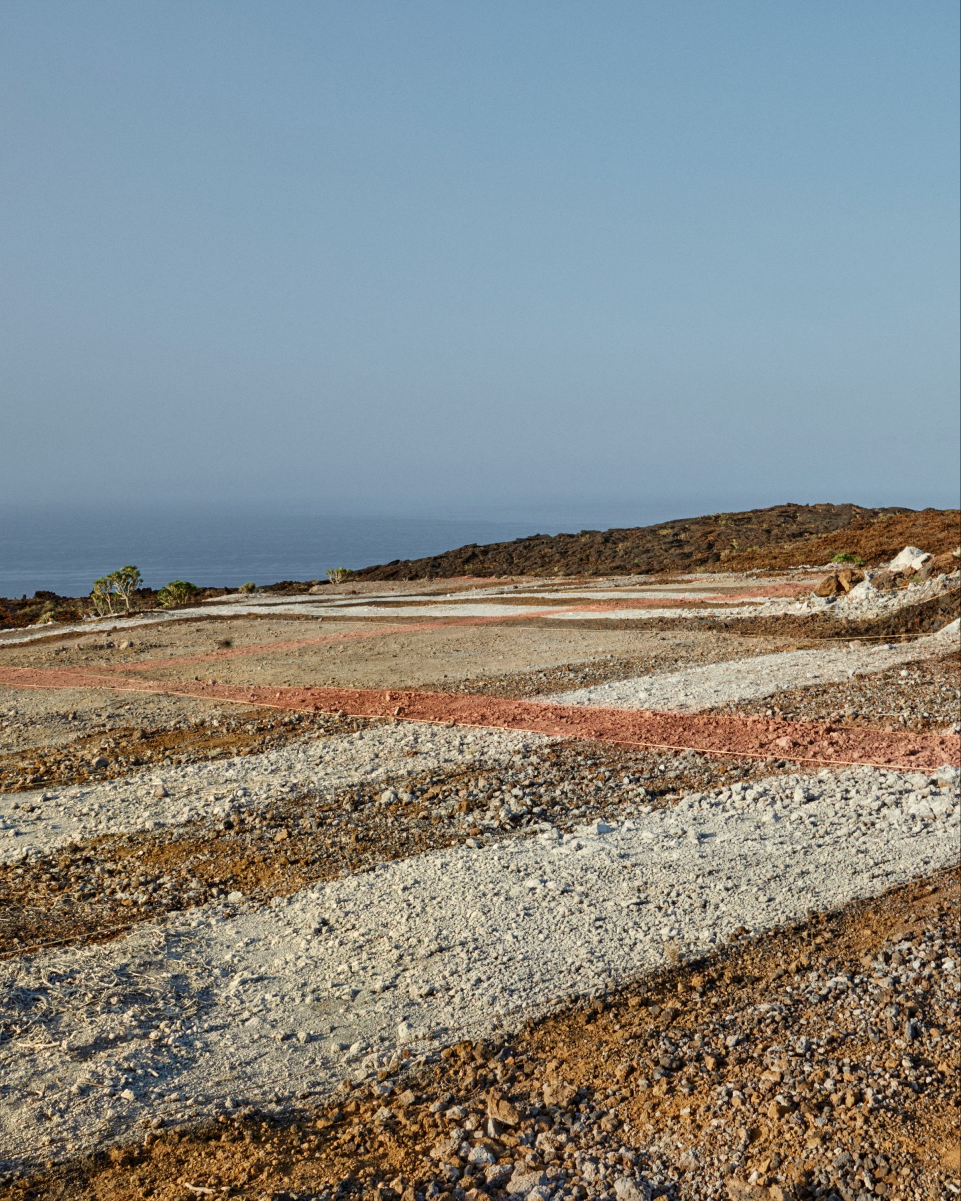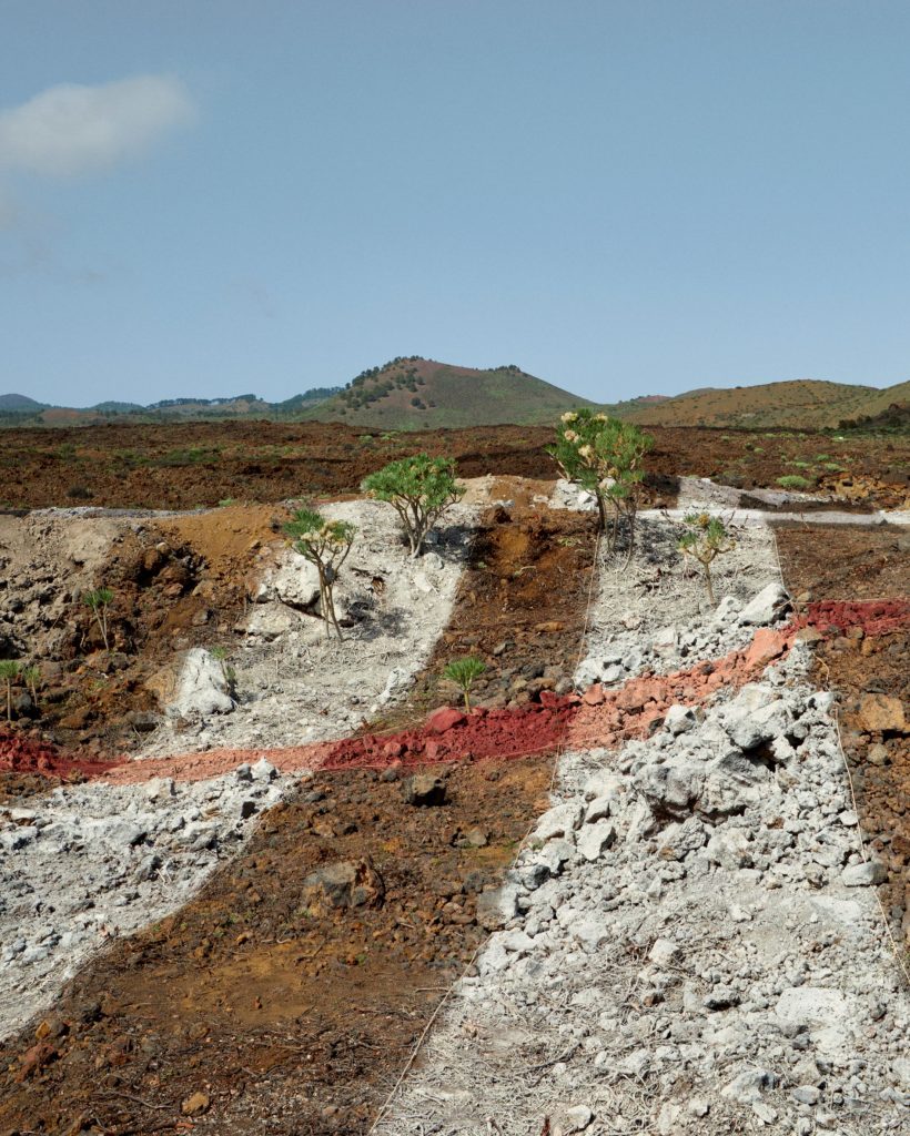 Tác phẩm đầu tiên được thực hiện bởi nghệ sĩ người Mỹ gốc Cuba Jorge Rodriguez-Gerada vào tháng 11 năm ngoái và tồn tại trong khoảng một tuần trước khi bị gió và nước mưa cuốn đi. Rodriguez-Gerada đã sử dụng một loại sơn tự nhiên có nguồn gốc từ sữa để tạo ra một phiên bản rộng 4.500 mét vuông của họa tiết kẻ caro nổi tiếng của Burberry trên ngọn núi lửa ở đảo El Hierro thuộc Quần đảo Canary. Đây cũng là hòn đảo tự cung tự cấp đầu tiên trên thế giới sử dụng gió là nguồn năng lượng chính để hoạt động.