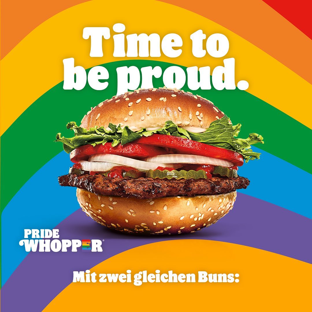 Tháng 6 là Tháng Tự Hào (Pride Month) của cộng đồng LGBTQ. Hàng năm có rất nhiều thương hiệu ra mắt phiên bản đặc biệt sản phẩm của mình để chào mừng sự kiện này. Không nằm ngoài cuộc chơi, chi nhánh Burger King ở Áo cũng nhanh tay lẹ chân tung ra chiếc bánh burger có tên Pride Whopper.