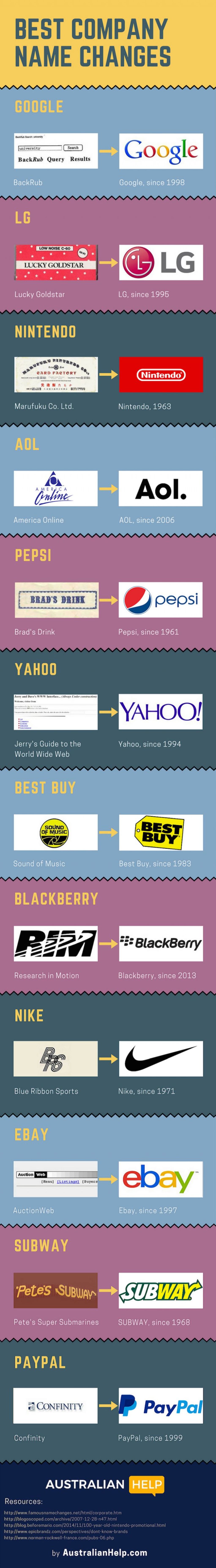 Các công ty nổi tiếng đã từng có tên gọi và logo thế nào? Posted by RGB 9 năm trước Bạn sẽ thật bất ngờ khi khám phá ra logo và tên gọi thuở ban đầu của một vài thương hiệu nổi tiếng dưới đây đấy. Cùng RGB khám phá nha. By Australian Help Ban biên tập: RGB.vn Nhập hội Sáng tạo cùng RGB: RGB 26/02/2017