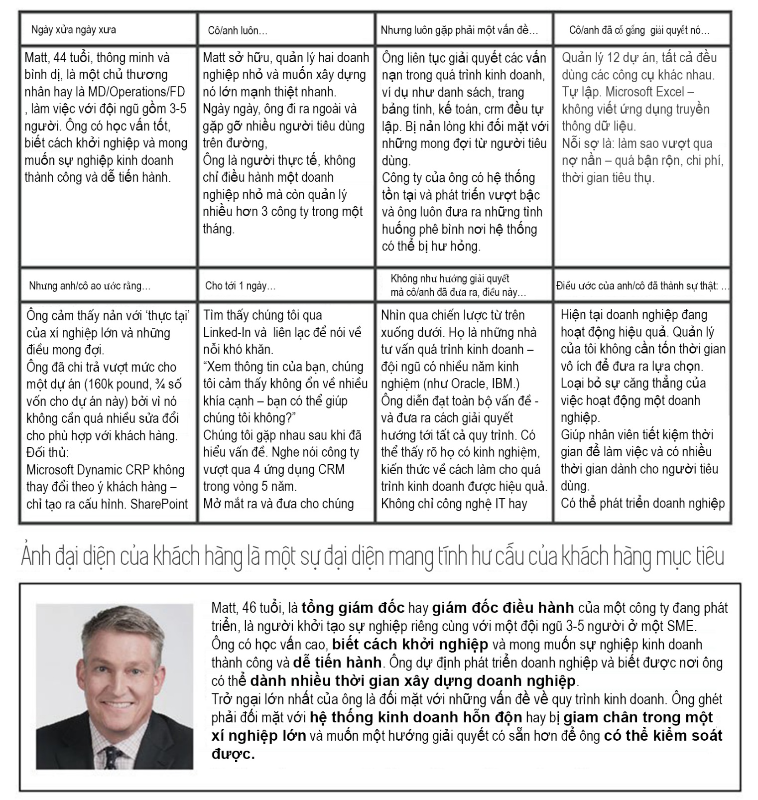 Ví dụ về một storyboard của thương hiệu và một ảnh đại diện của khách hàng