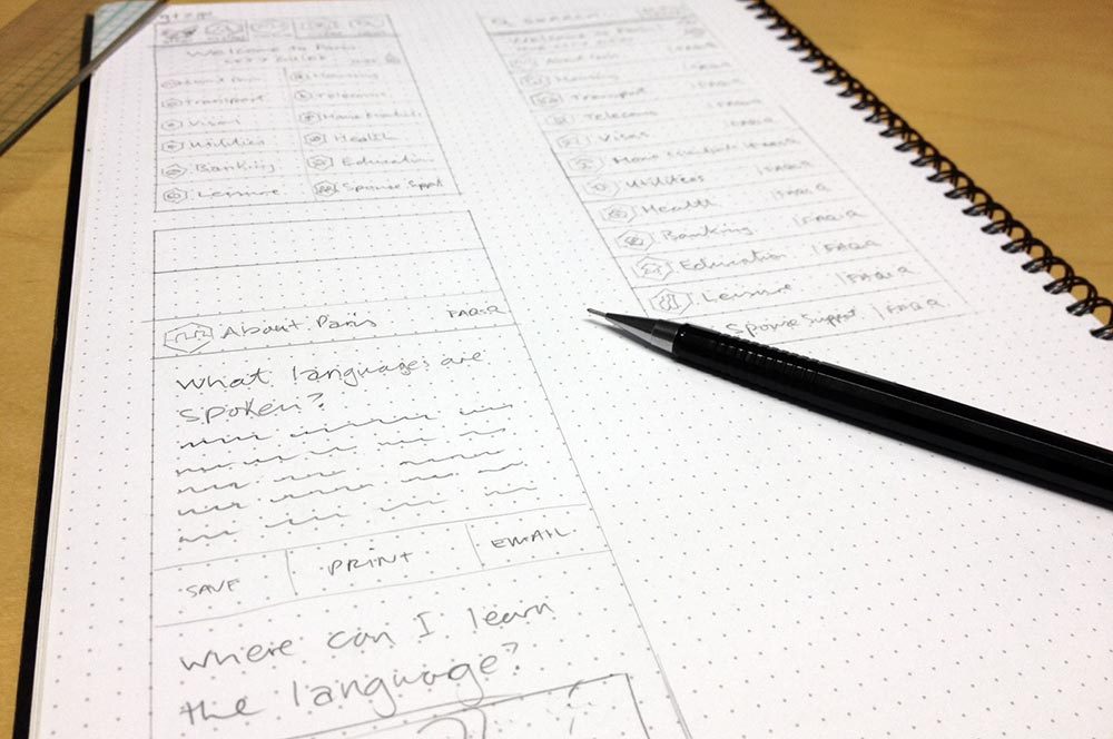 Mẫu phác thảo thô đơn giản dẫn dắt cho bố cục của website hoặc ứng dụng. Có nhiều công cụ online khác nhau nhưng tôi thấy Marvel hay InVision đôi lúc hữu ích với tôi. Và tất nhiên, công cụ tốt nhất khi bắt tay làm bất cứ thiết kế nào là một cây bút chì và bàn vẽ – đó là cách nhanh nhất để mô phỏng mẫu phác thảo và quy trình công việc.