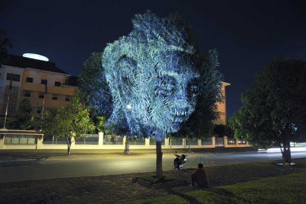 Những tán cây tại thành phố Phnom Penh trong một ngày đẹp trời bất ngờ xuất hiện các vị Thần và Phật. Mới chỉ nhìn qua và đọc câu vừa rồi nghe thật giật gân phải không? Đó là dự án “medium projection art” (nghệ thuật chiếu hình) của nhiếp ảnh gia người người Pháp – Clement Briend. Dự án này được mang tên “Cambodian Trees”.