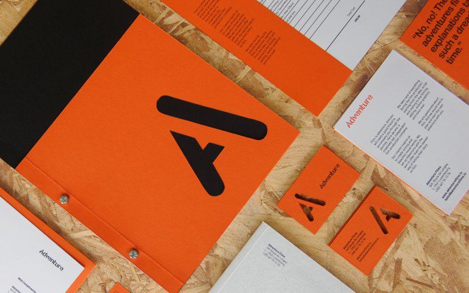 Với bộ nhận diện thương hiệu của công ty sản xuất phim phiêu lưu sử dụng màu Cam lớn và đậm với phần typography cũng lớn và nổi bật như vậy để truyền tải cảm giác sống động của cuộc phiêu lưu và sự trẻ trung, đúng như tính chất của công ty này.