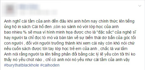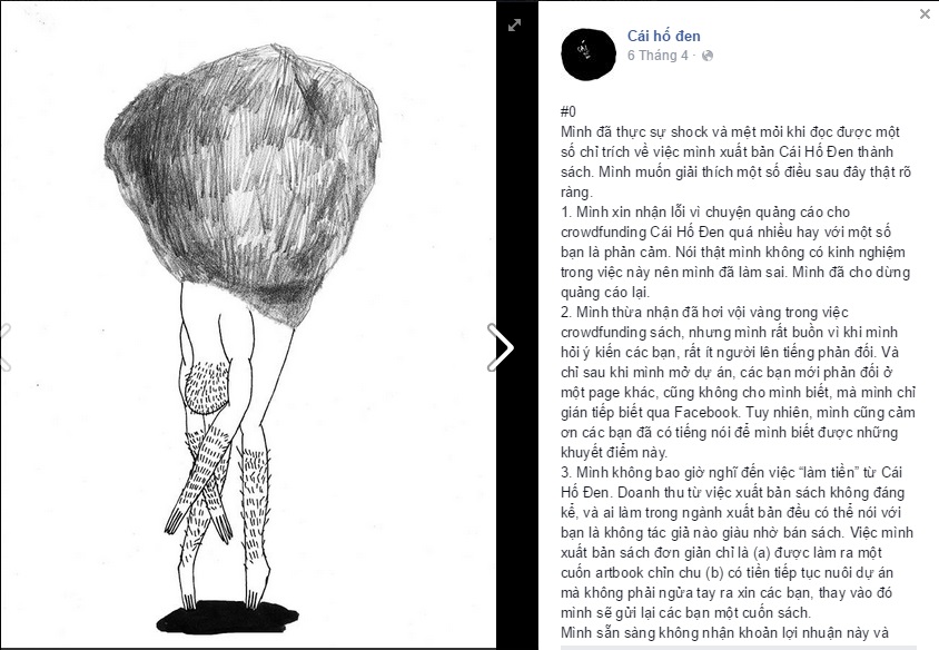 Đứng trước áp lực dư luận về việc phát hành sách, chủ nhân của trang Cái Hố Đen đã chia sẻ suy nghĩ của mình: