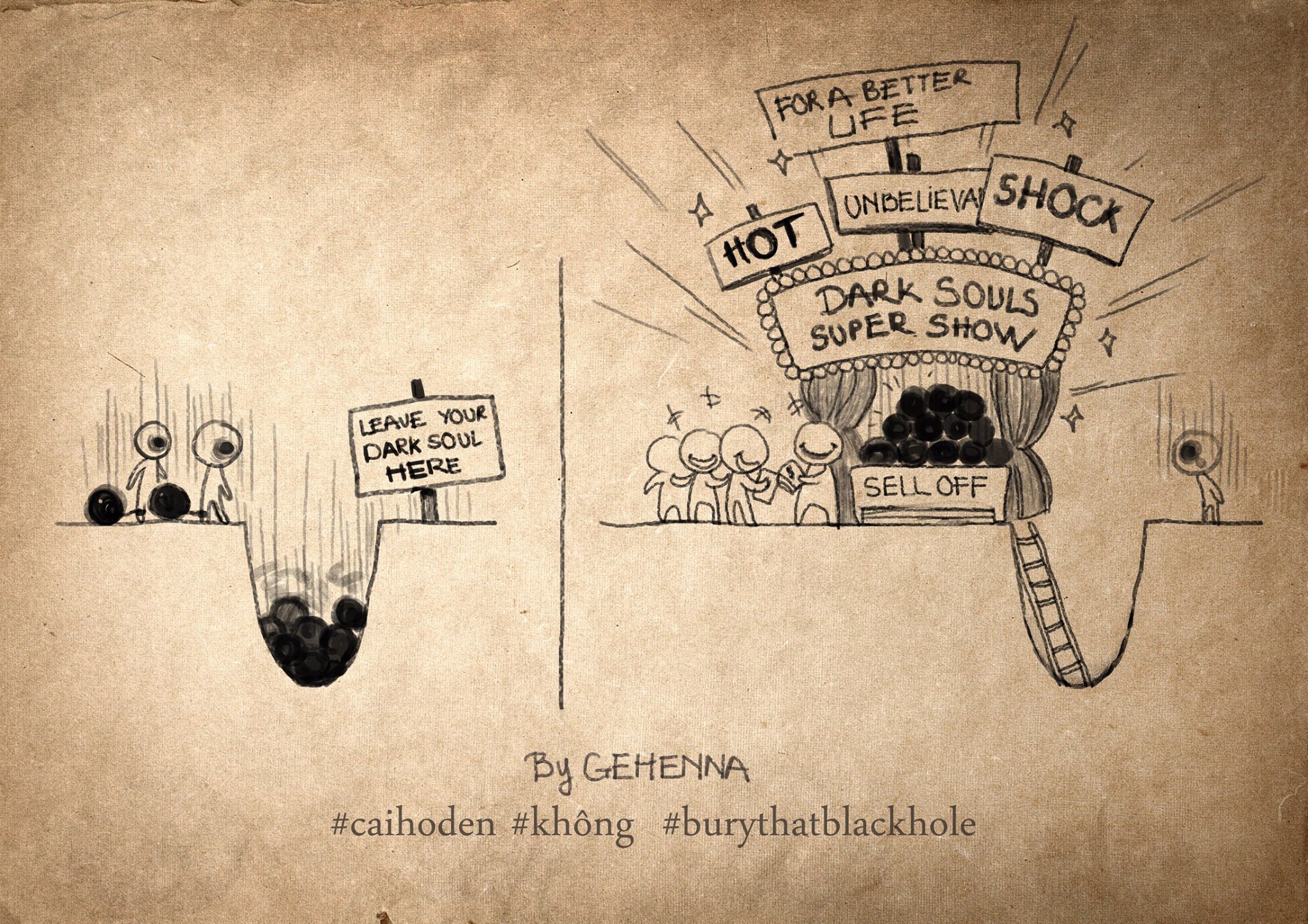 3. Mình không bao giờ nghĩ đến việc “làm tiền” từ Cái Hố Đen. Doanh thu từ việc xuất bản sách không đáng kể, và ai làm trong ngành xuất bản đều có thể nói với bạn là không tác giả nào giàu nhờ bán sách. Việc mình xuất bản sách đơn giản chỉ là (a) được làm ra một cuốn artbook chỉn chu (b) có tiền tiếp tục nuôi dự án mà không phải ngửa tay ra xin các bạn, thay vào đó mình sẽ gửi lại các bạn một cuốn sách.