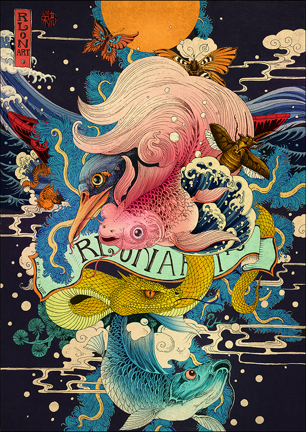Rlon Wang, họa sĩ minh họa làm việc tại Shenzhen,Guangdong China. Anh sử dụng những mảng màu mạnh kết hợp với những chi tiết đường nét, mang đến sự cuốn hút cho người xem.