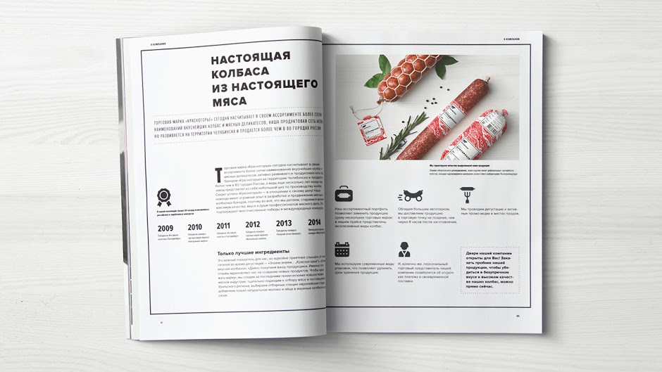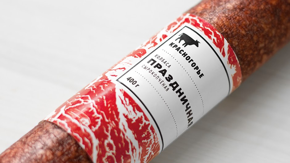 Chúng tôi kiểm soát việc xác định thương hiệu bằng cách đào sâu và các chi tiết cụ thể của quá trình sản từ các thành phẩn trong công thức cho đến người sản xuất. Krasnogorie chế biến xúc xích từ thịt Ural và chúng tôi đã bắt đầu tìm kiếm ý tưởng mới cho thiết kế bao bì.