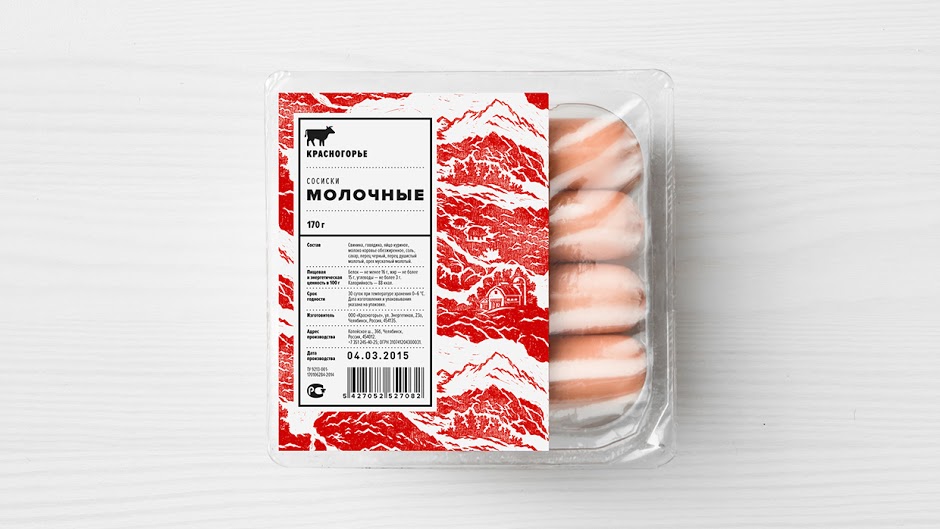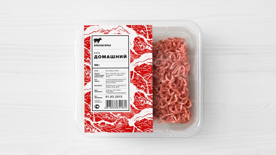 Từng sớ thịt có hình dạng của các trang trại, làng mạc, núi Ural, gia súc đã gây cảm hứng cho chúng tppi thiết kế nên bao bì với tên thương hiệu và các chi tiết đặc thù trên. Với phần nền nhiều lớp đã tạo điều kiện cho chúng tôi điều chỉnh bao bì thương hiệu hợp lý và bổ sung nhiều nhãn thong tin ngay ngắn.