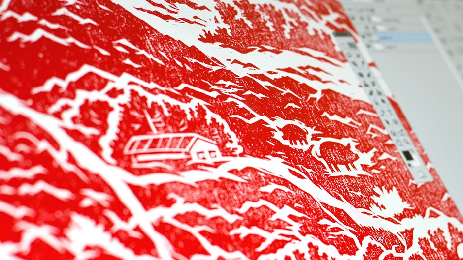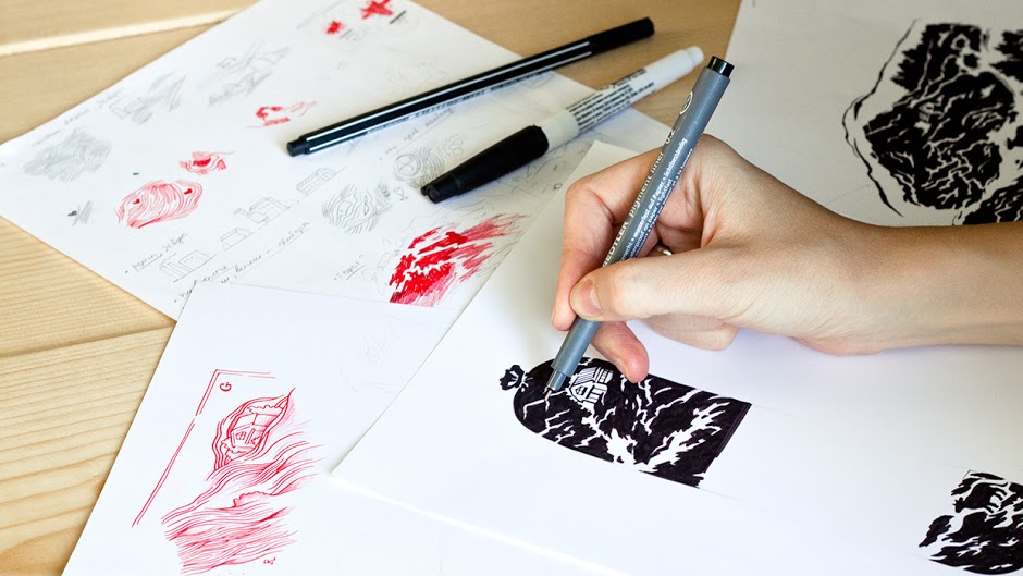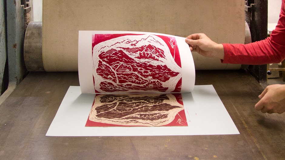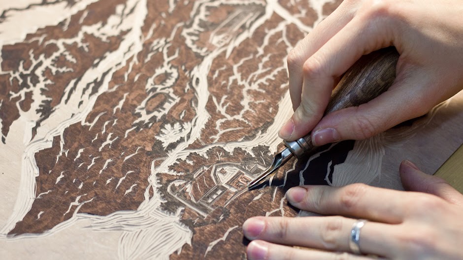 Phải mất rất nhiều thời gian để mà thực hiện kỹ thuật khắc gỗ. Chúng tôi bắt đầu tìm kiếm những chất liệu và kỹ thuật, phác thảo trên giấy và sử dụng giấy scan để đồ lại trên bản gỗ. Chúng tôi đã mất ba ngày làm việc vất vả.