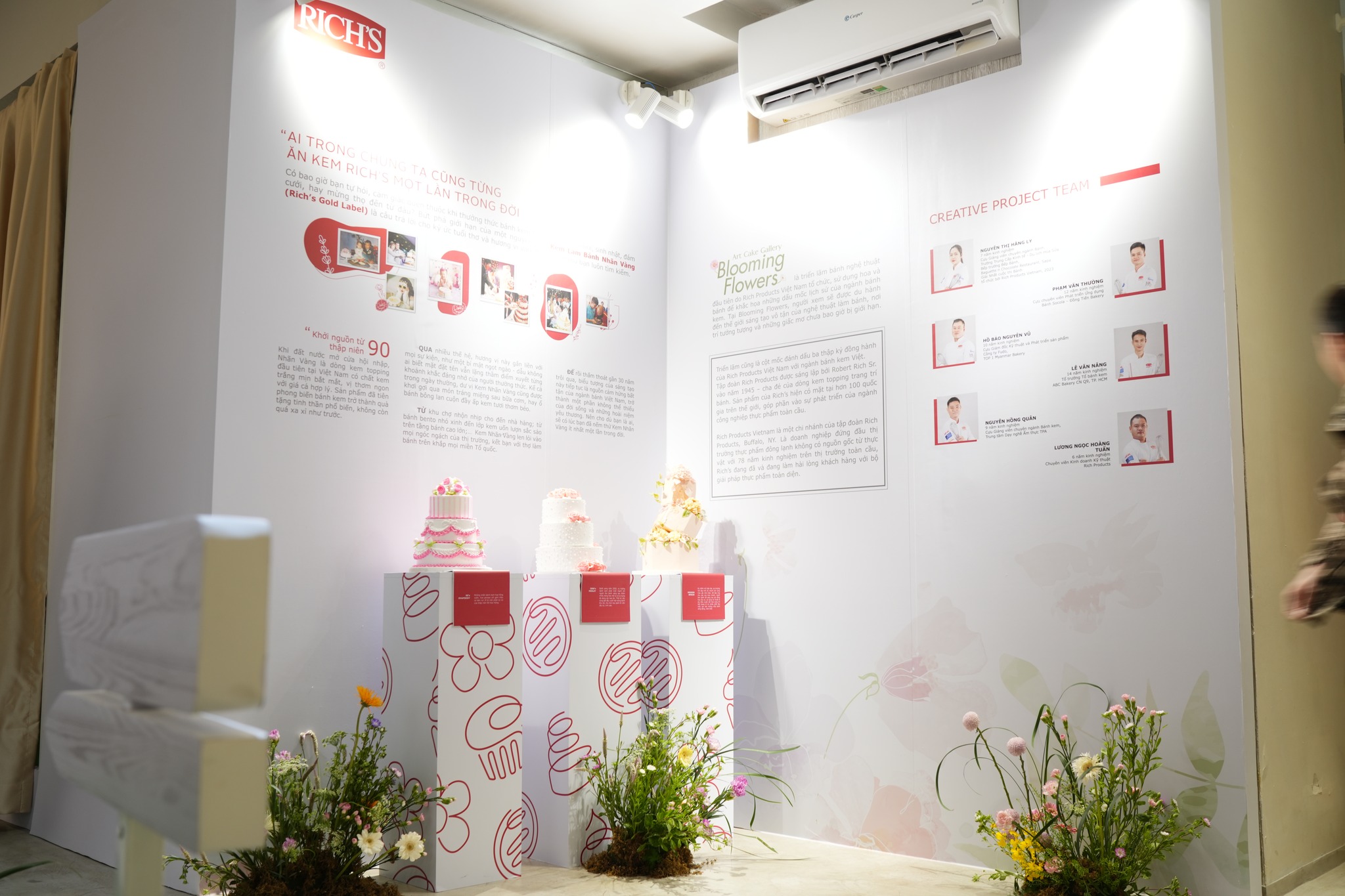 Kem Làm Bánh Nhãn Vàng (Rich’s Gold Label) chẳng biết từ bao giờ đã trở thành mạch nguồn lan tỏa tình yêu và nghệ thuật trong thế giới bánh. Mở đầu triển lãm Blooming Flowers là những thông tin mang đậm dấu ấn lịch sử của Rich’s khi vào thị trường bánh kem 30 năm trước cùng sản phẩm Gold Label. Để khắc họa cho minh chứng lịch sử này Rich’s đã dùng hình ảnh ba chiếc bánh khác nhau đại diện cho 3 thời kỳ: