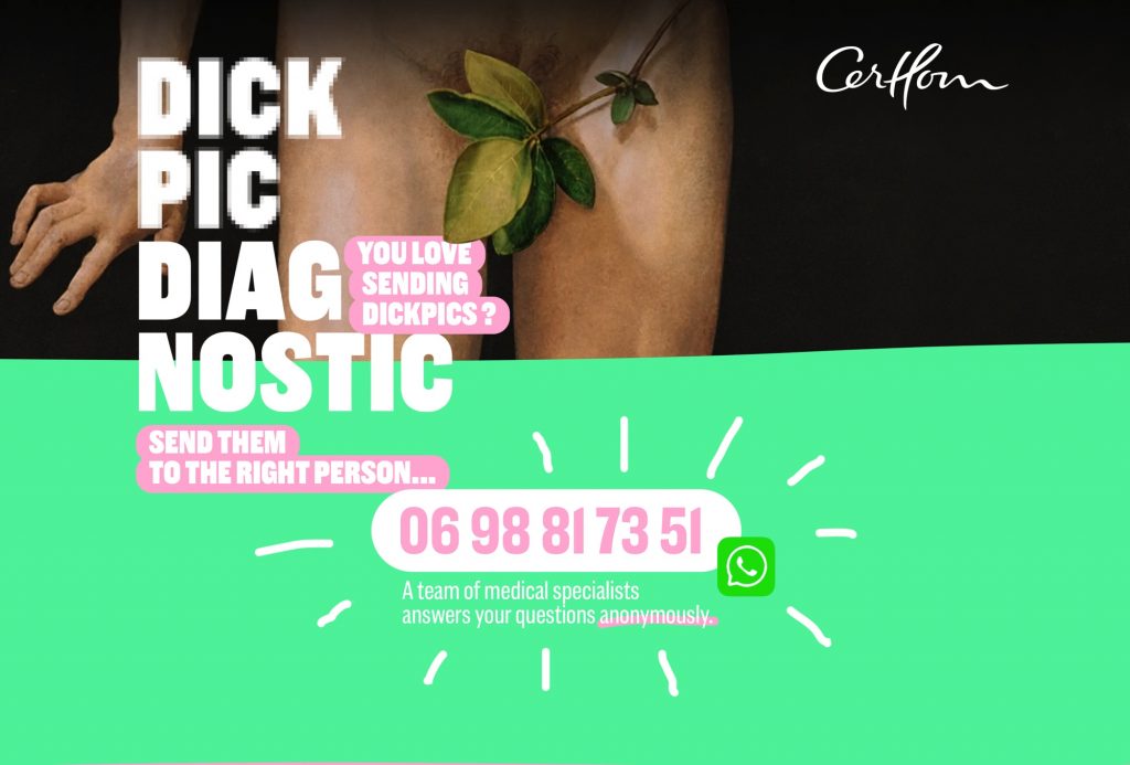 Chiến dịch độc đáo và có phần tinh ranh có tên “Dickpics for a good cause” này được thực hiện bởi TBWA\Paris cho CerHom đã làm được một công đôi việc khi vừa nhắc nhở nam giới nhớ đi khám thường xuyên, vừa dạy cho họ một bài học rằng việc gửi ảnh nhạy cảm khi chưa được sự đồng thuận có thể bị ghép vào tội quấy rối.