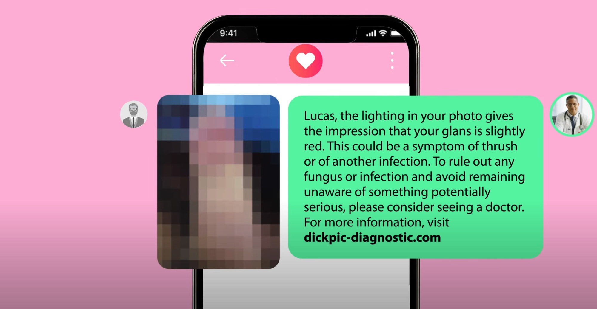 “Xin chào Simon! Sau khi kiểm tra kỹ bức ảnh, có vẻ như một bên tinh hoàn của bạn đang bị sưng. Đây có thể là triệu chứng của nhiễm trùng hoặc ung thư. Bạn nên đi khám bác sĩ và để biết thêm thông tin, hãy truy cập https://dickpic-diagnostic.com/”, dòng tin nhắn viết.