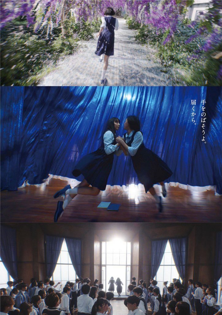 Quảng cáo có tựa đề demo kimi ga mieta (but then I saw you) có hình ảnh nữ diễn viên Sena Nakajima vào vai nữ sinh chạy dọc hành lang trường học và bước vào cuộc phiêu lưu kỳ ảo, như thể cô ấy rơi qua một cái hố thỏ và lạc vào một thế giới thần tiên. Điều đặc biệt là thế giới kỳ ảo này không được tạo ra từ CGI mà ekip đã làm thủ công toàn bộ set bối cảnh và đạo cụ, từ các máy làm hoa giấy, sàn và tường có động cơ nhấp nhô.