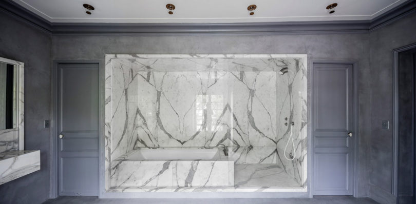 Phòng tắm được trang trí bằng đá cẩm thạch.